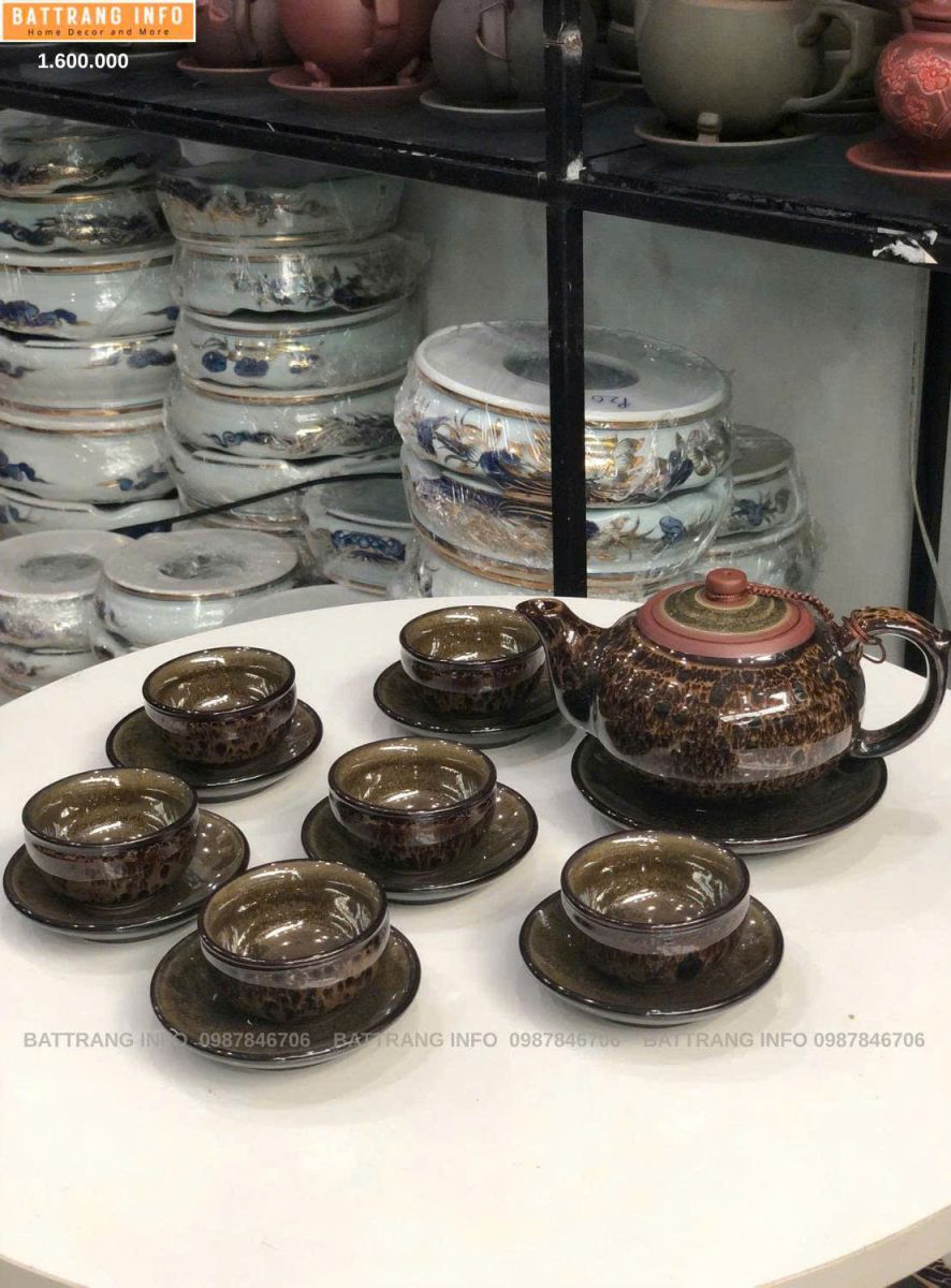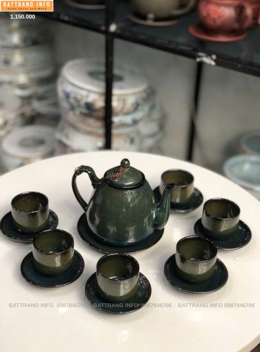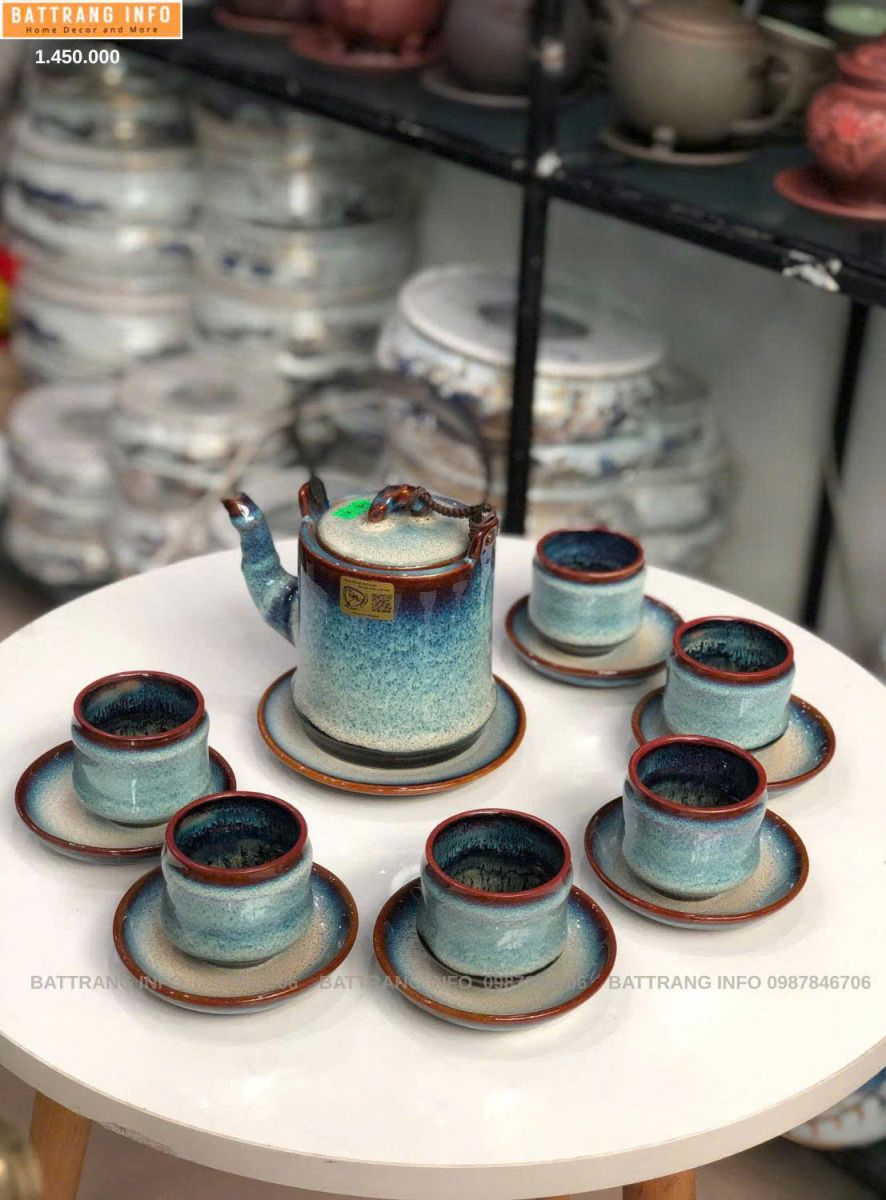 Bộ Ấm Chén Men Hỏa Biến Bát Tràng 1 Ấm 6 Chén 7 Đĩa Kê – Tinh Hoa Gốm Sứ Cao Cấp