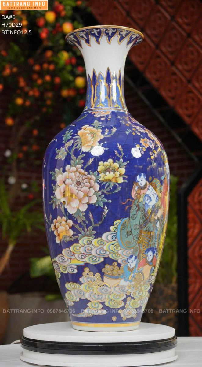 Bảo Bình Tam Đa Phúc Lộc Thọ cao 70cm vẽ vàng 24K là dòng sản phẩm gốm sứ phong thuỷ cao cấp được chế tác tại làng gốm Bát Tràng. Tác phẩm được tạo hình theo biểu tượng Tam Đa – Phúc, Lộc, Thọ, tượng trưng cho hạnh phúc – tài lộc – trường thọ, mang lại năng lượng phong thủy tốt lành cho gia chủ. Chiếc bảo bình nổi bật với lớp họa tiết vẽ vàng 24K thủ công, tạo vẻ sang trọng, đẳng cấp, thích hợp trưng bày trong phòng khách, phòng thờ, sảnh cơ quan, nhà hàng, khách sạn hoặc làm quà tặng cao cấp.