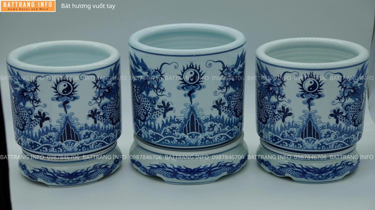 Bát hương men lam vuốt tay cao cấp có nhiều kích thước: