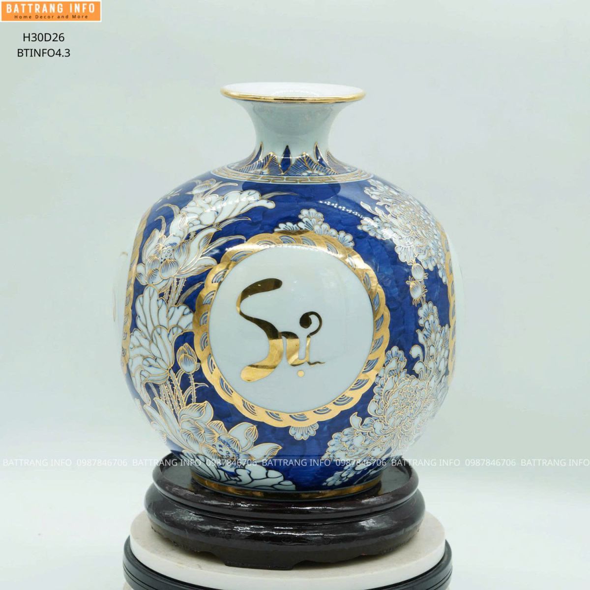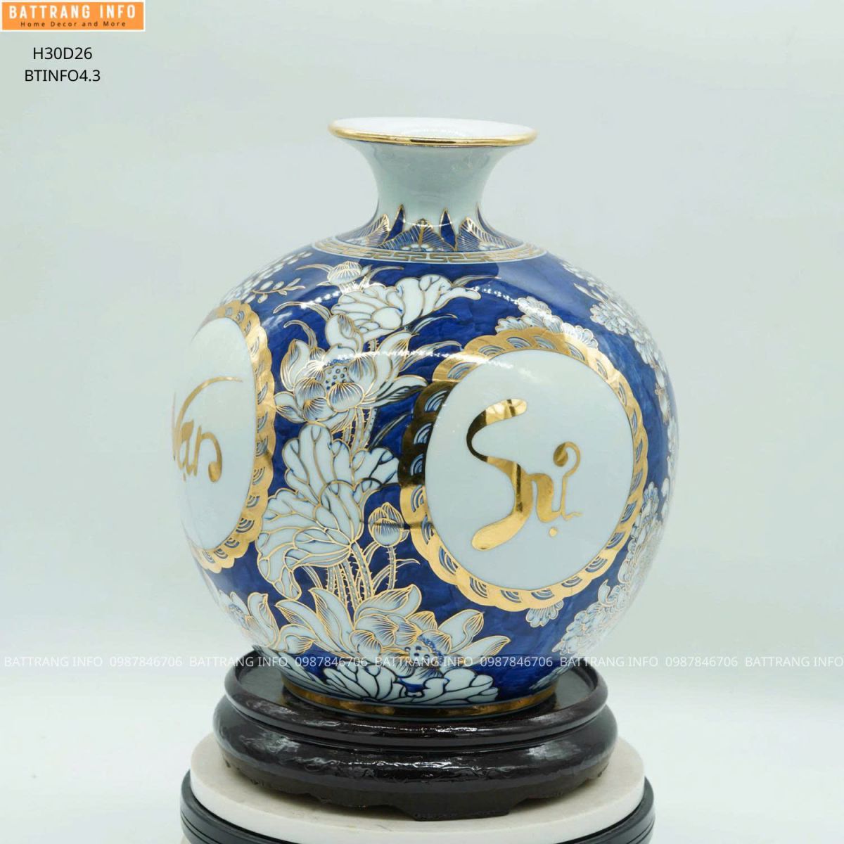 Chất liệu Gốm sứ Bát Tràng cao cấp Trang trí Vẽ tay, dát vàng 24k