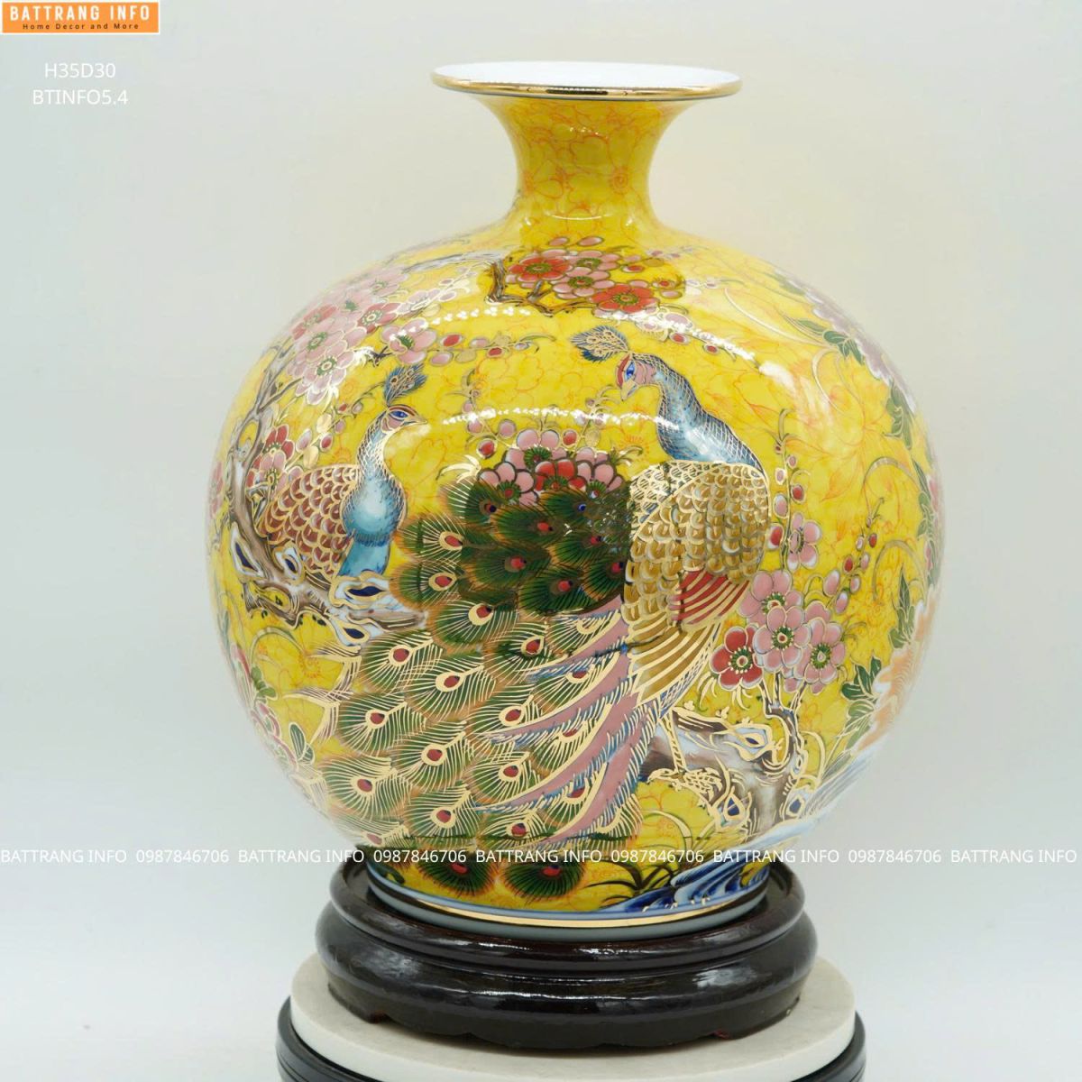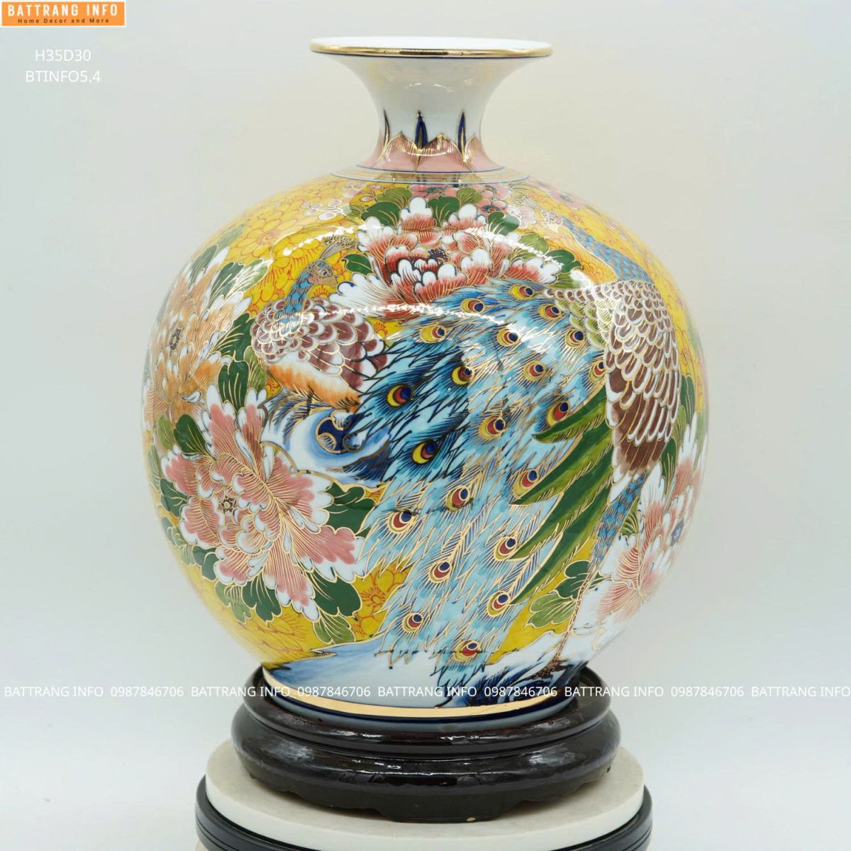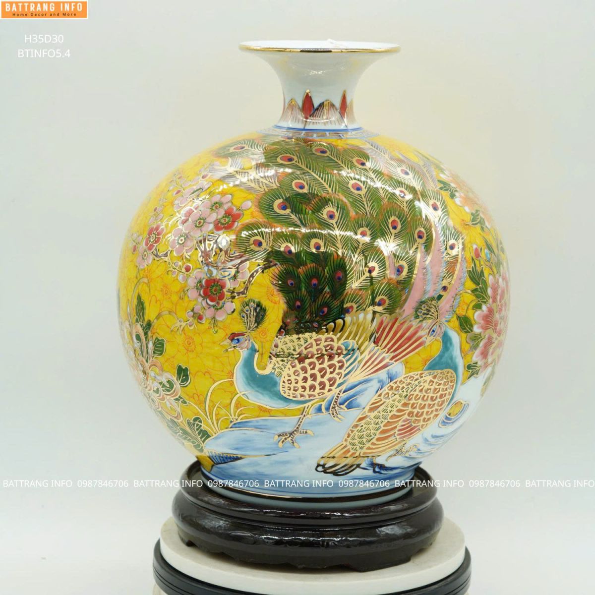 Bình Hút Lộc Công Danh Phú Quý Cao 35cm Vẽ Vàng 24K Cao Cấp Bát Tràng