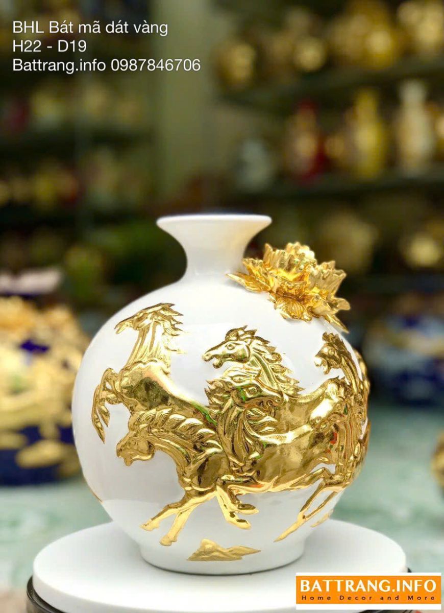 👉 Bình hút lộc Mã đáo thành công men màu đắp nổi dát vàng cao 22cm không chỉ là vật phẩm trang trí mà còn là biểu tượng của thịnh vượng – thành công – phát đạt dài lâu cho gia chủ.