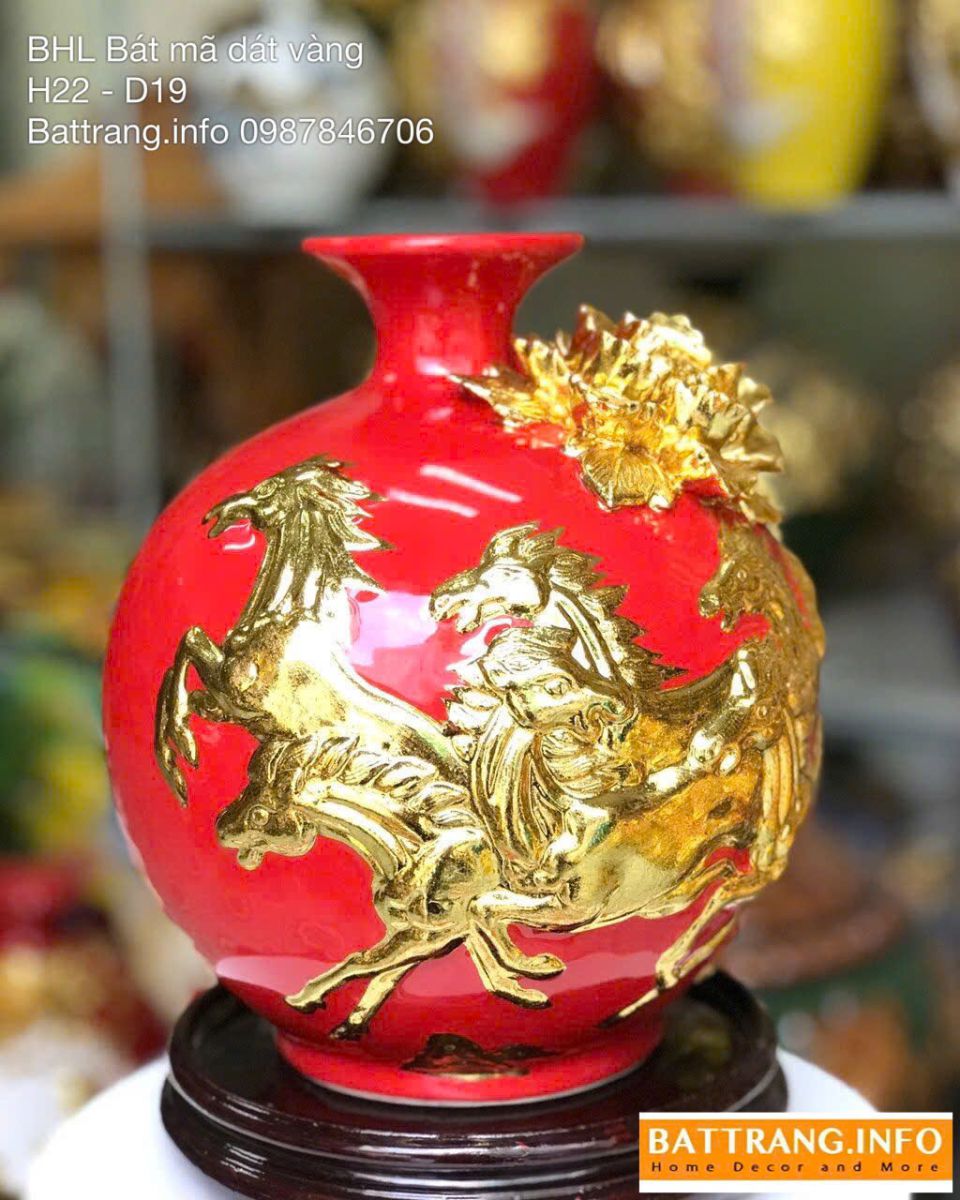 Bình Hút Lộc Mã Đáo Thành Công Men Màu Đắp Nổi Dát Vàng Cao 22cm – Gốm Sứ Bát Tràng Cao Cấp
