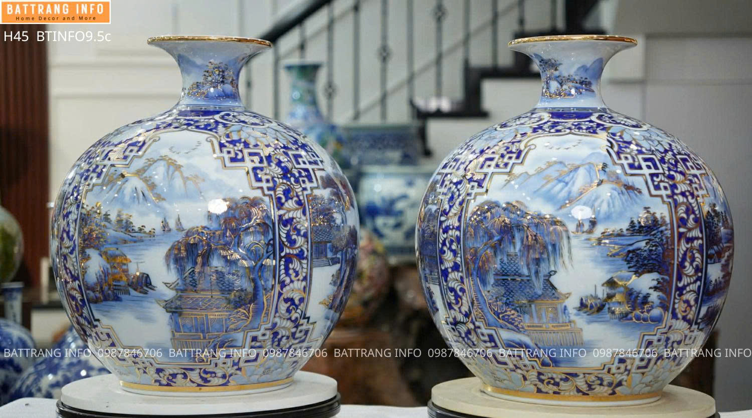 Bình Hút Lộc Tứ Cảnh Sơn Thủy Vẽ Vàng 24K Cao 45cm Cao Cấp Bát Tràng – Tuyệt Tác Phong Thủy