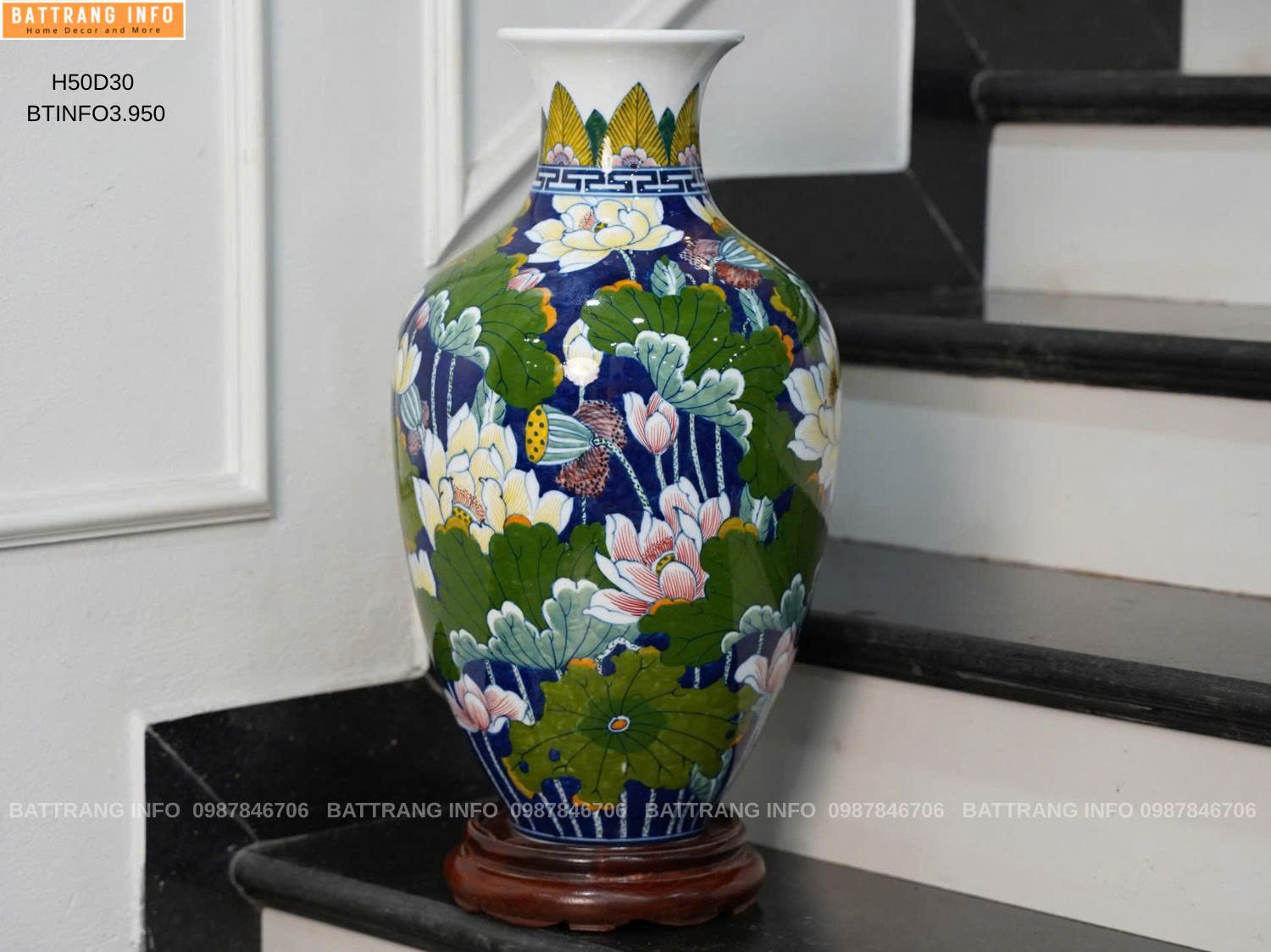 • Tên sản phẩm: Bình trang trí vẽ sen cao 50cm cao cấp Bát Tràng