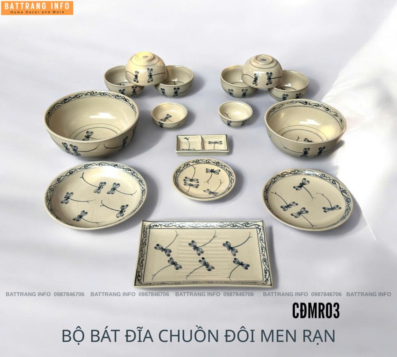 Bộ Bát Đĩa Chuồn Đôi Men Rạn Cao Cấp Bát Tràng – Tinh Hoa Gốm Việt Trong Gian Bếp Hiện Đại