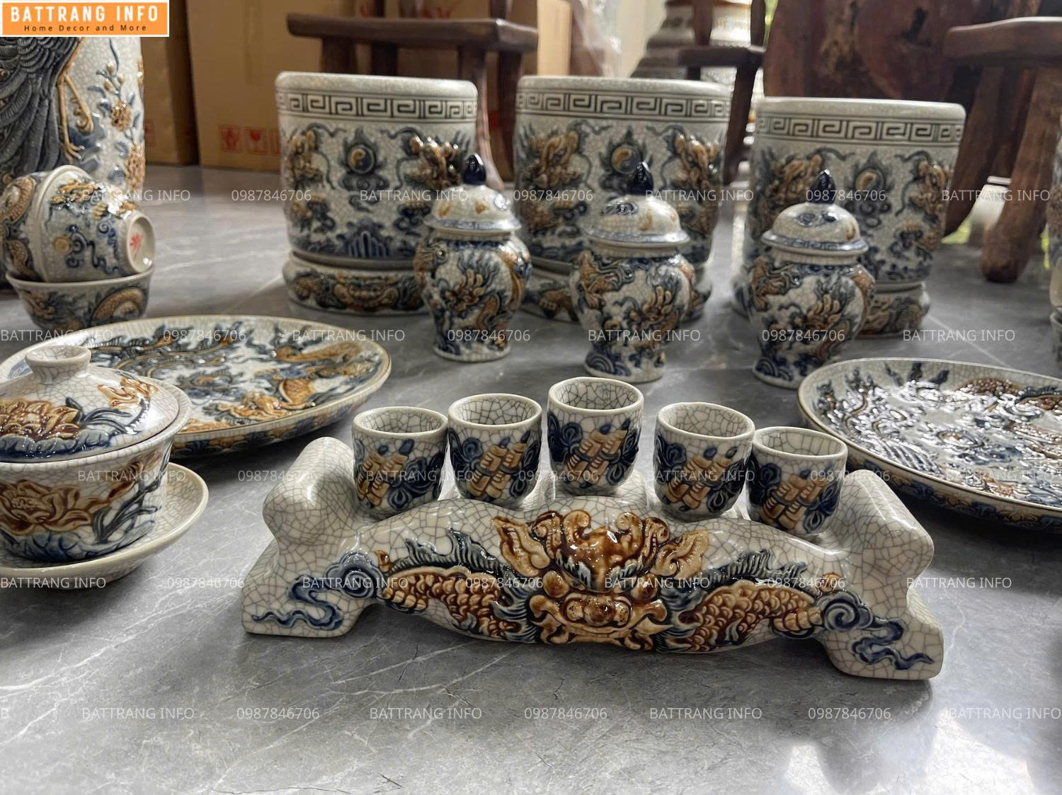 5. Giá bộ đồ thờ men rạn đắp nổi VIP Bát Tràng