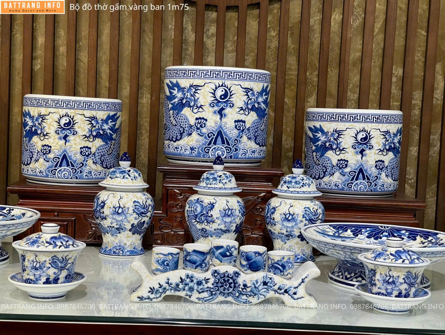 Bộ Đồ Thờ Gấm Vàng Cao Cấp Bát Tràng – Tinh Hoa Tâm Linh Việt