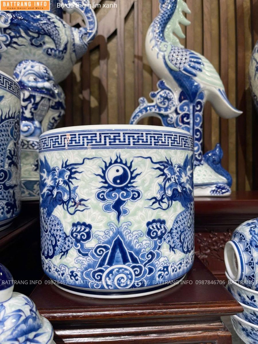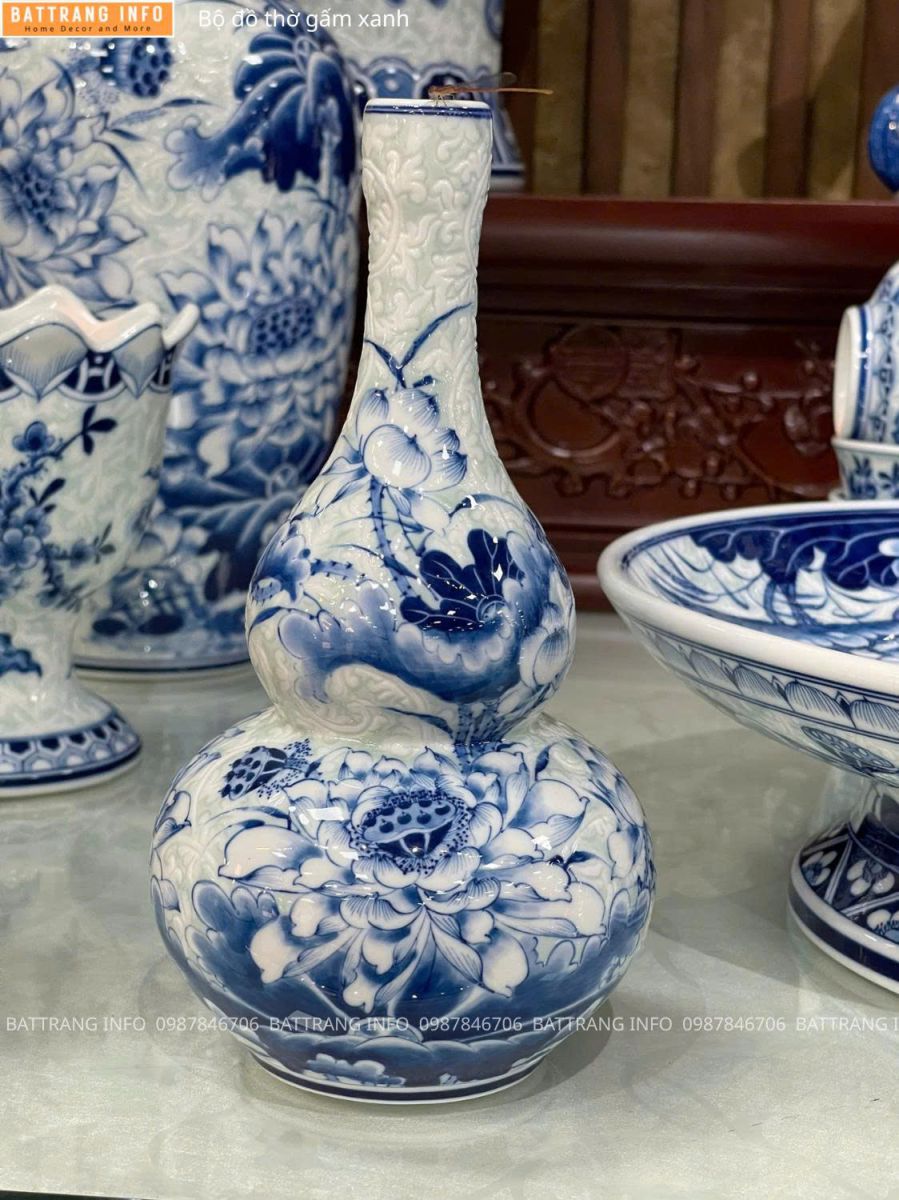 Bộ Đồ Thờ Gấm Xanh Cao Cấp Bát Tràng – Tinh Hoa Gốm Việt, Sang Trọng & Bền Vững