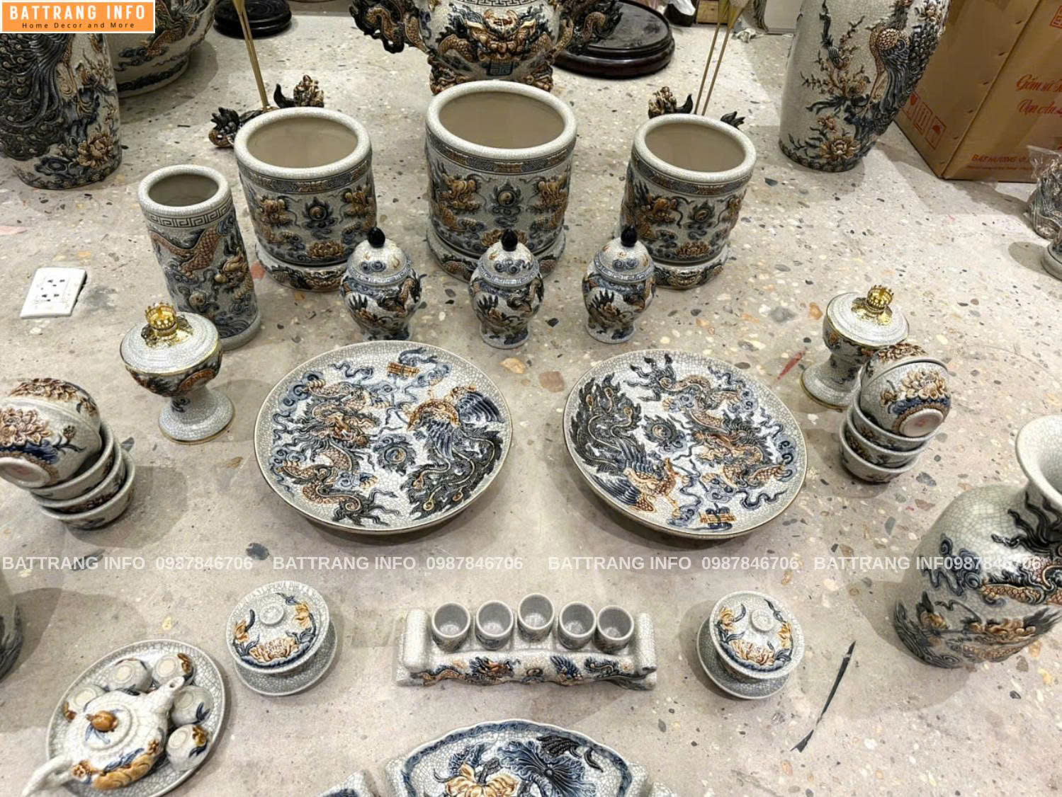 Bộ Đồ Thờ Men Rạn Đắp Nổi Cao Cấp Bát Tràng – Tinh Hoa Gốm Việt Cho Không Gian Thờ Tự Trang Nghiêm
