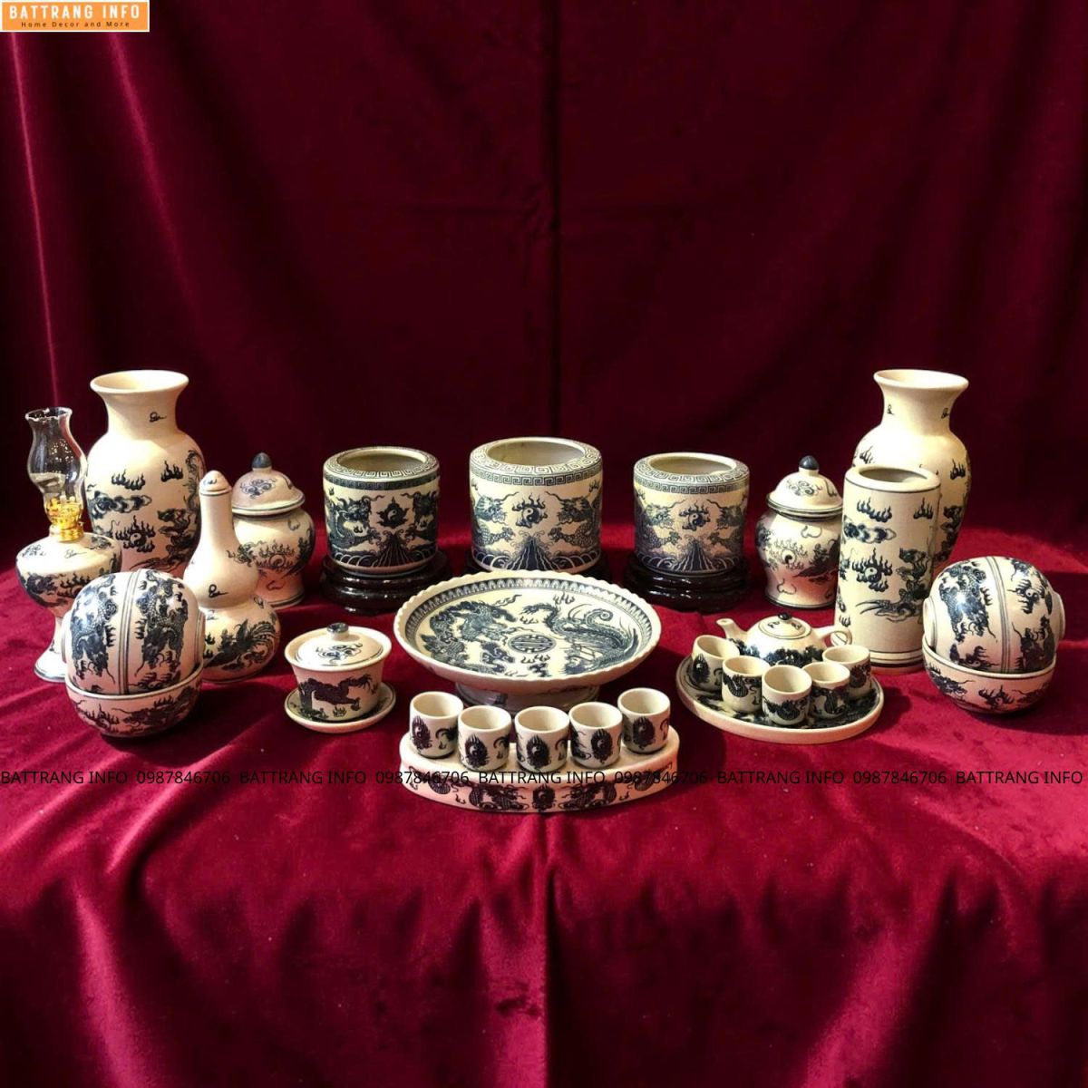 Bộ Đồ Thờ Men Rạn Vẽ Tay Họa Tiết Rồng – Gốm Sứ Bát Tràng Cao Cấp Bán Chạy Nhất Hiện Nay
