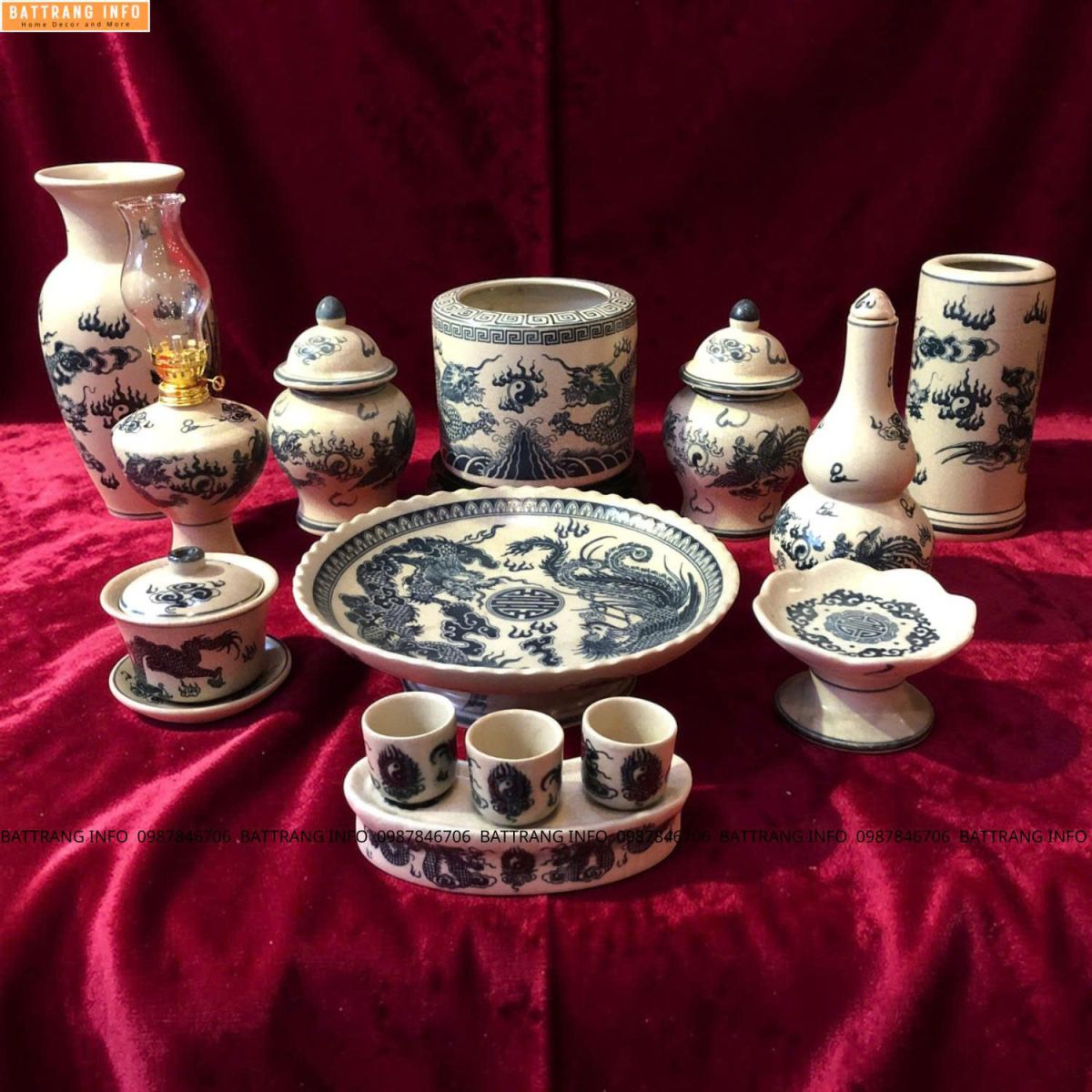 Bộ Đồ Thờ Men Rạn Vẽ Tay Họa Tiết Rồng – Gốm Sứ Bát Tràng Cao Cấp