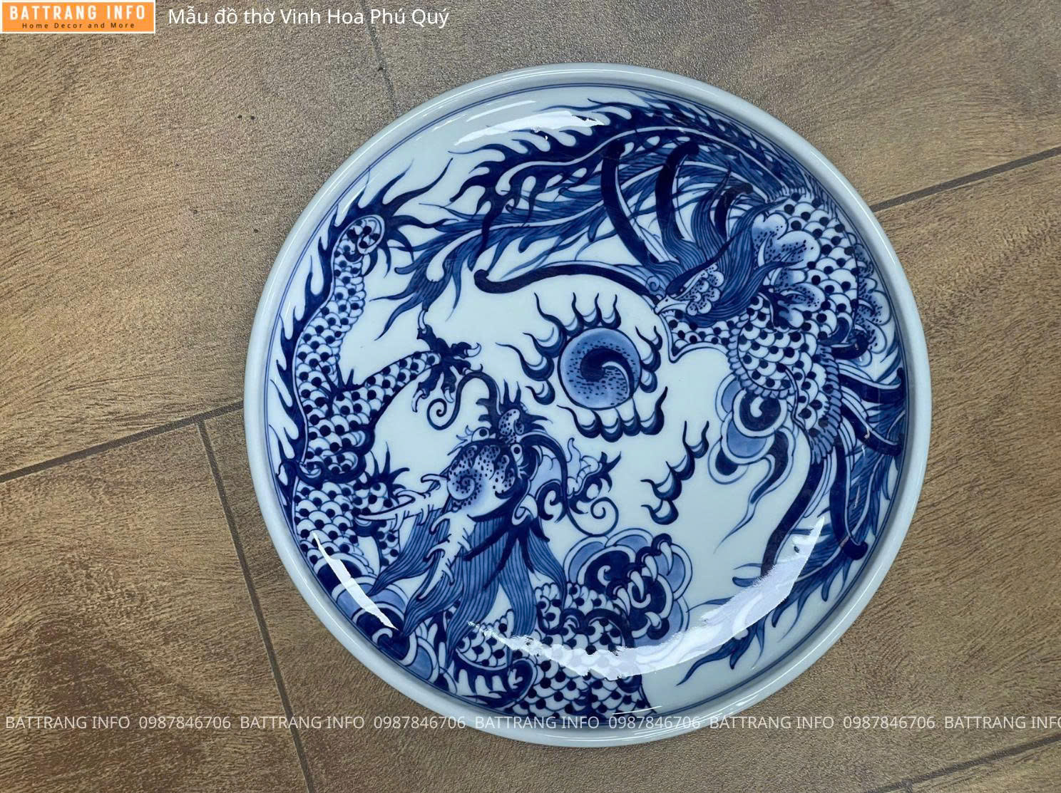 Bộ Đồ Thờ Vinh Hoa Phú Quý Men Lam Vẽ Tay Cao Cấp Bát Tràng - Mâm Bồng
