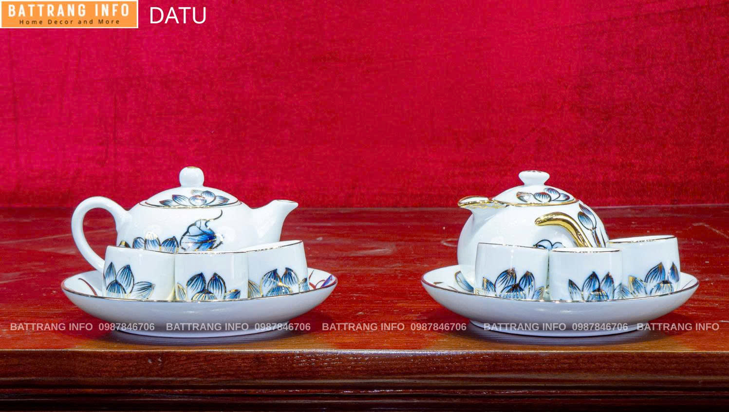 Bộ Trà Sen Vẽ Vàng 24K Cao Cấp Bát Tràng