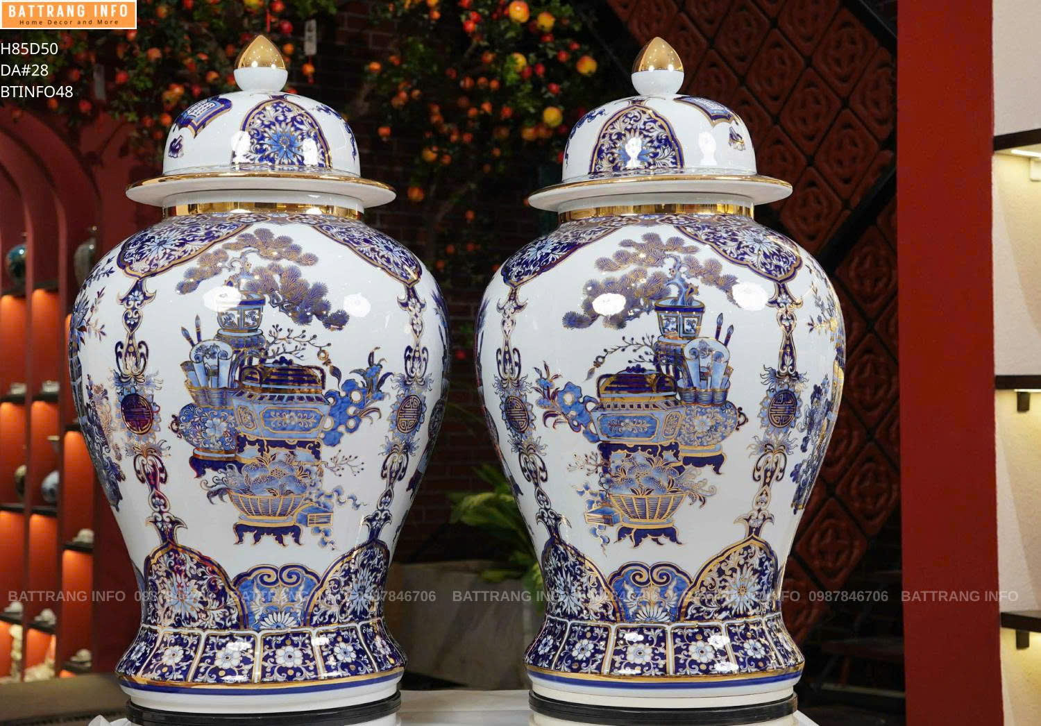 Để sở hữu cặp choé tứ quý vẽ vàng 24k cao 85cm, bạn hãy đến với Gốm sứ Battrang.info – chính sách bảo hành và cam kết vàng 24k rõ ràng.