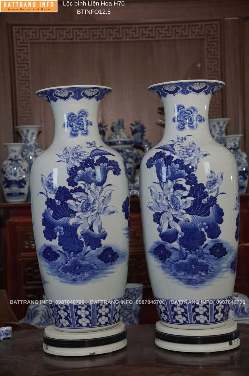Cặp Lộc Bình Liên Hoa Vẽ Tay Cao 70cm – Tinh Hoa Gốm Sứ Bát Tràng Cao Cấp