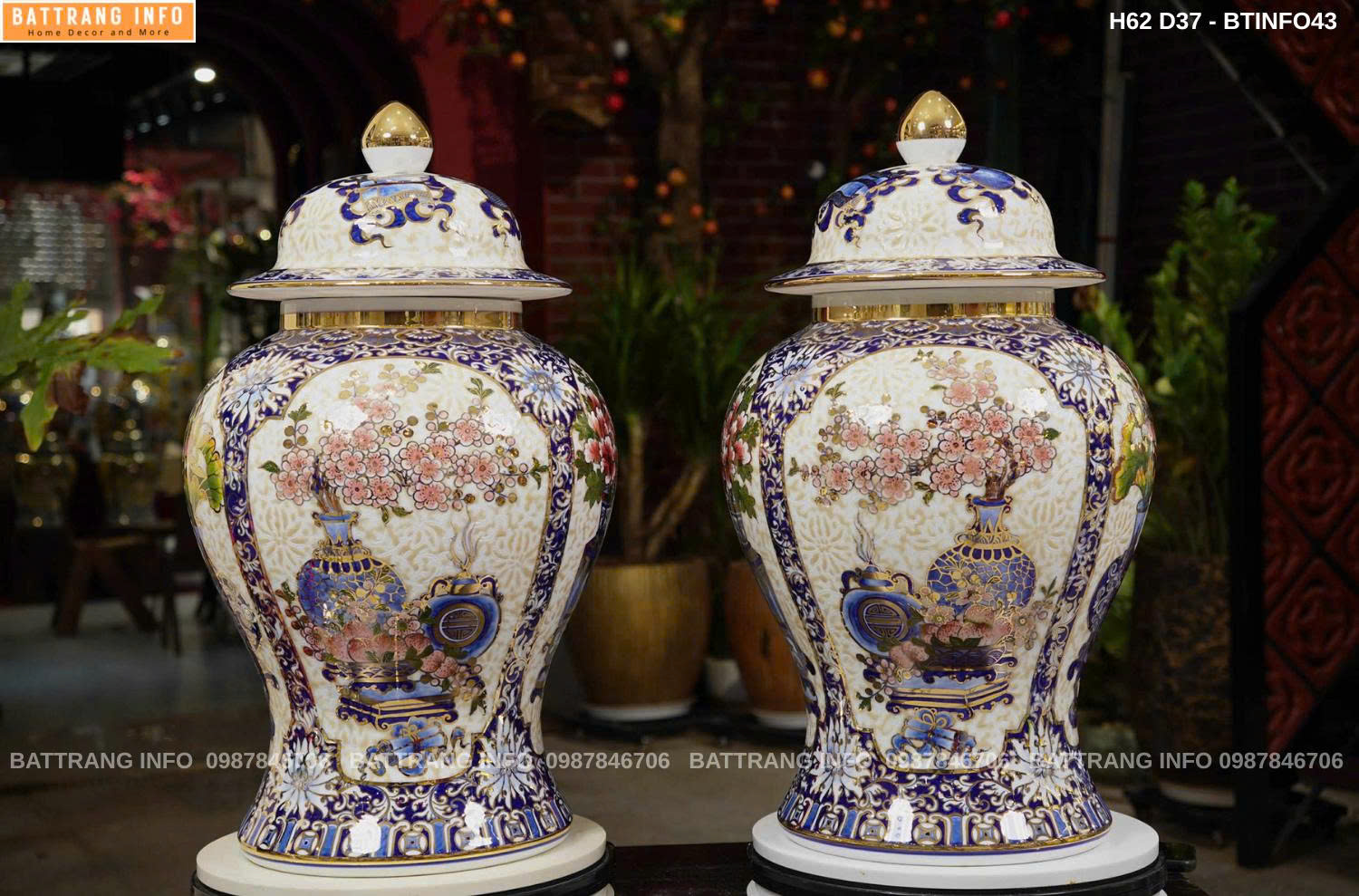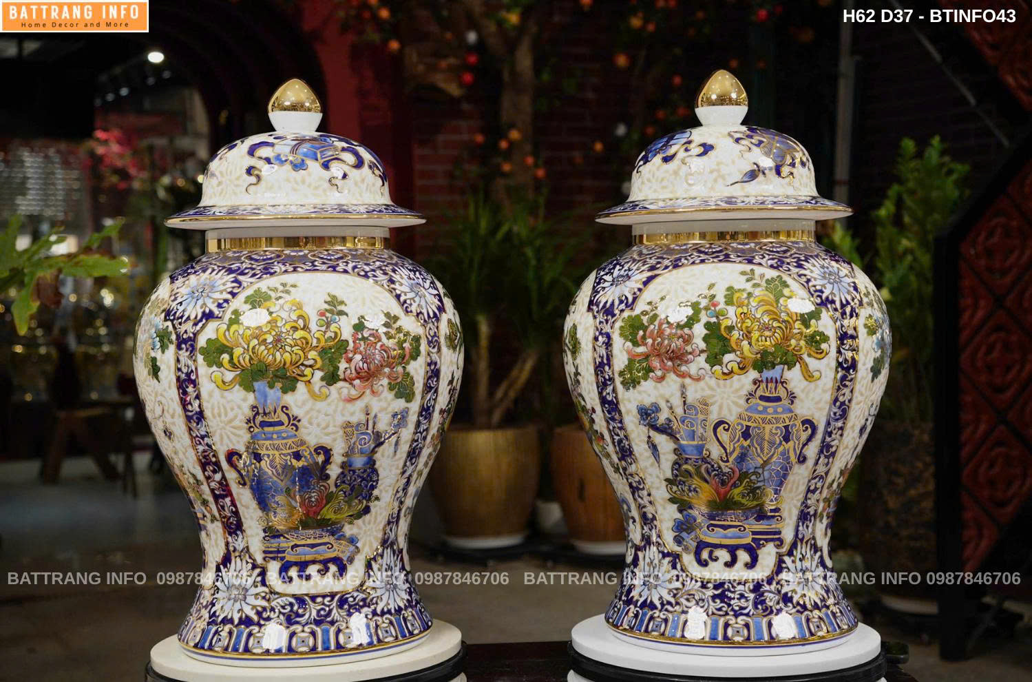 Chóe Tứ Quý Cổ Đồ Cao 62cm Vẽ Vàng 24K Cao Cấp Bát Tràng – Tinh Hoa Gốm Việt