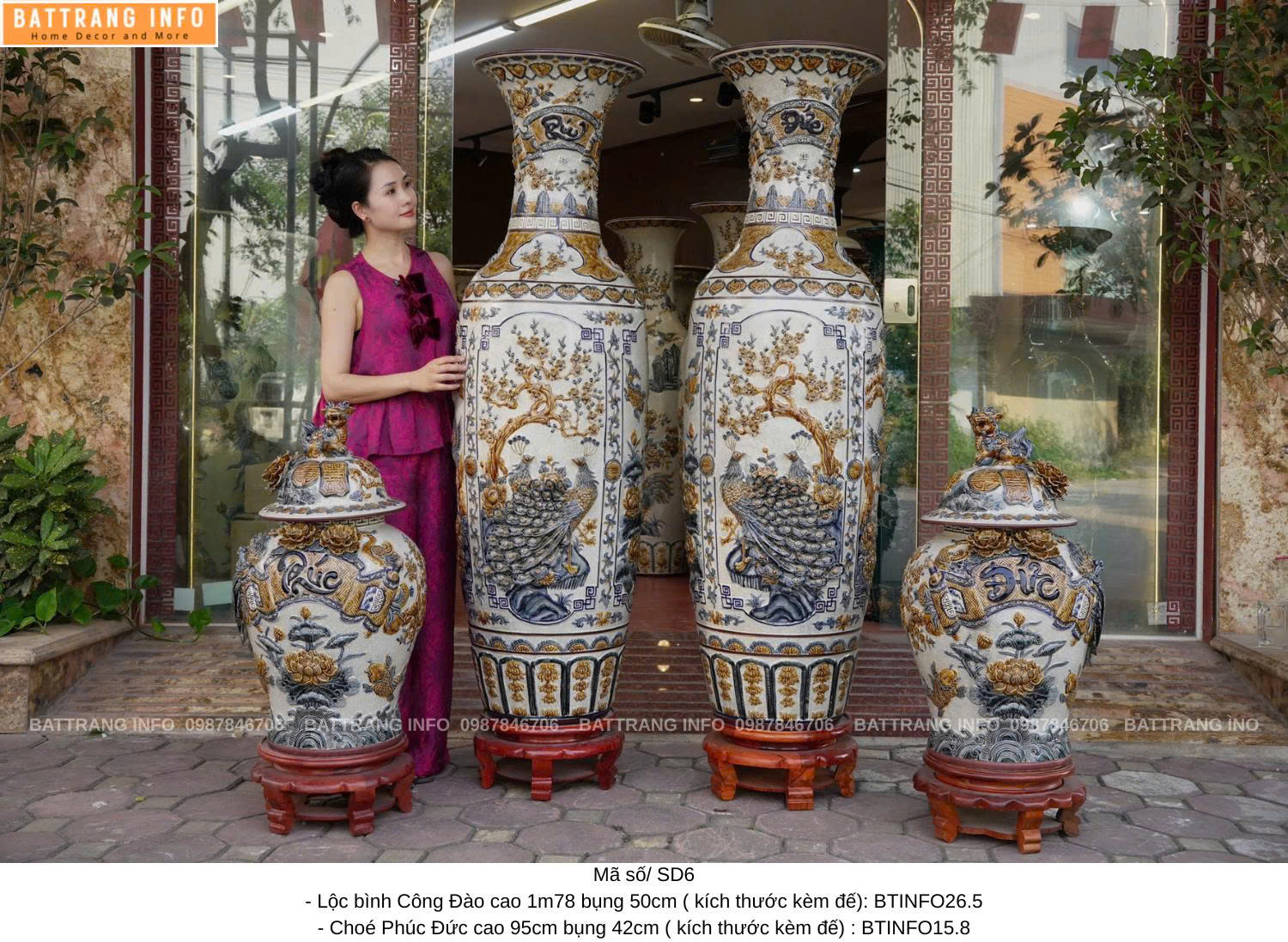 Combo Lộc Bình Công Đào 1m78 & Choé Phúc Đức 95cm – Sang Trọng, Đẳng Cấp Gốm Bát Tràng