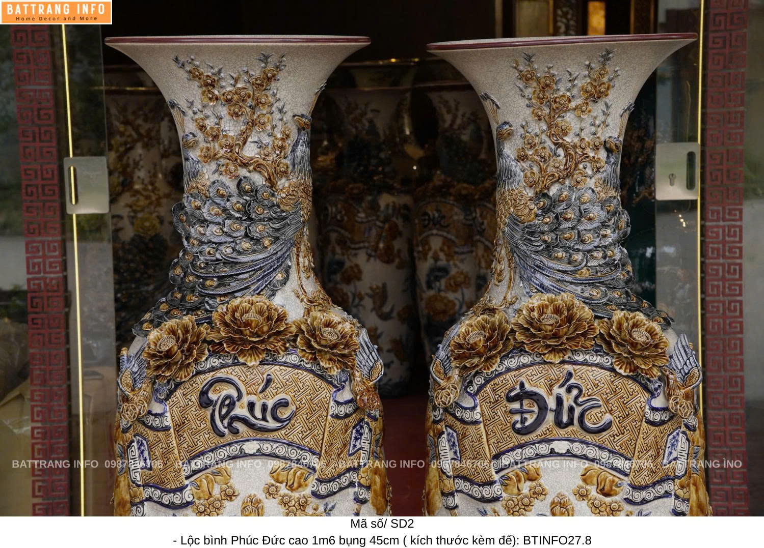 Kích thước: • Lộc Bình Phúc Đức: Cao 1m6, đường kính ~45cm