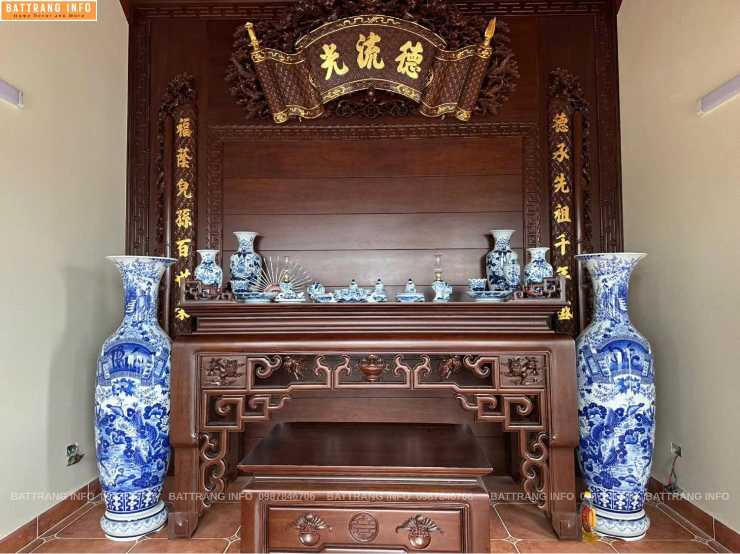 Full Combo Bộ Đồ Thờ Và Lộc Bình Men Lam Khử Cao Cấp Bát Tràng Cho Khách Bắc Ninh