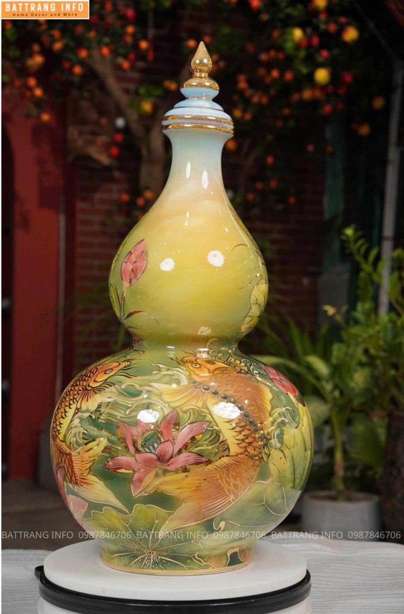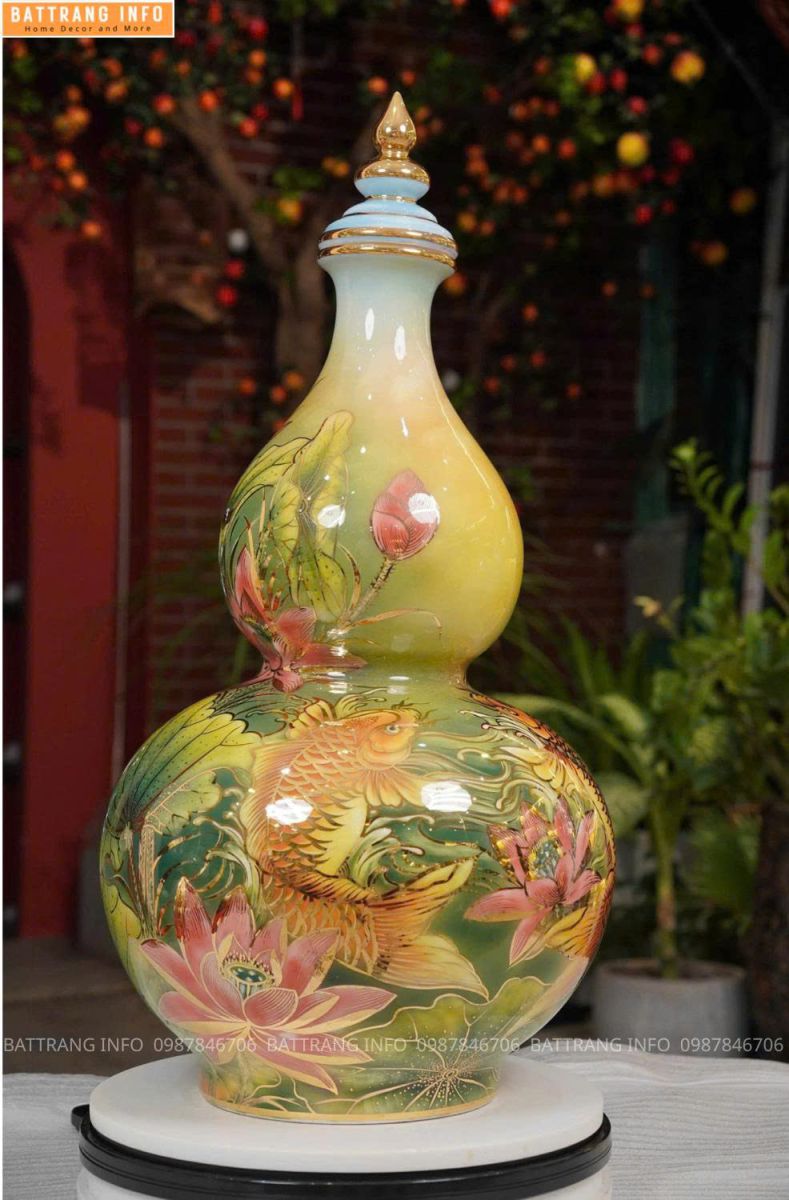 Giới thiệu Hồ Lô Sen Cá Bát Tràng vẽ vàng 24K