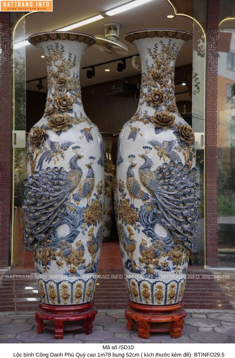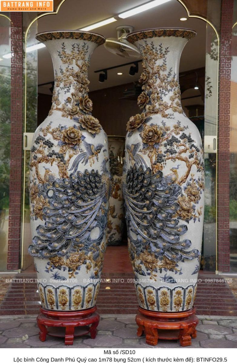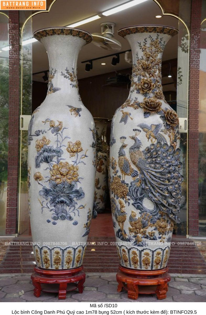 Lộc Bình Công Danh Phú Quý Men Rạn Đắp Nổi Cao 1m78 Bụng 52cm – Đỉnh Cao Nghệ Thuật Gốm Bát Tràng