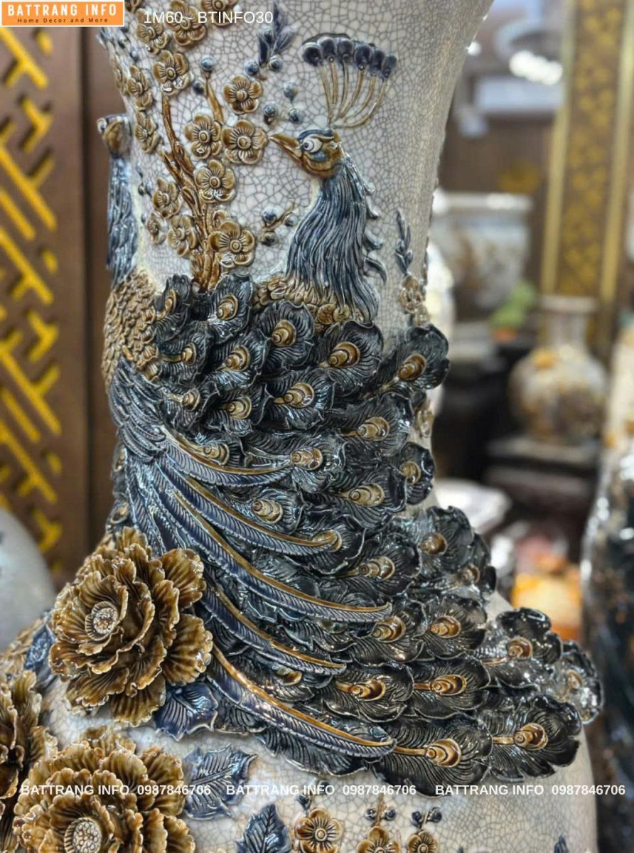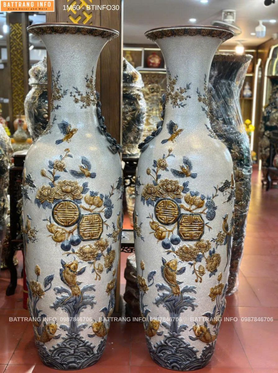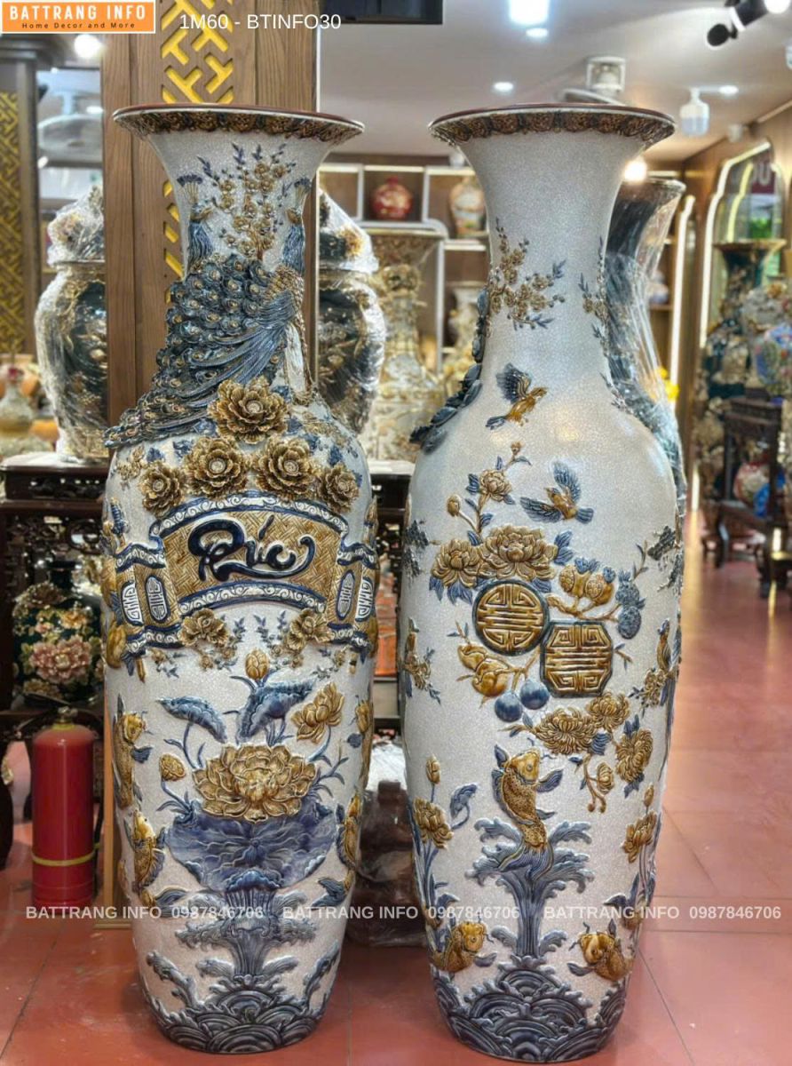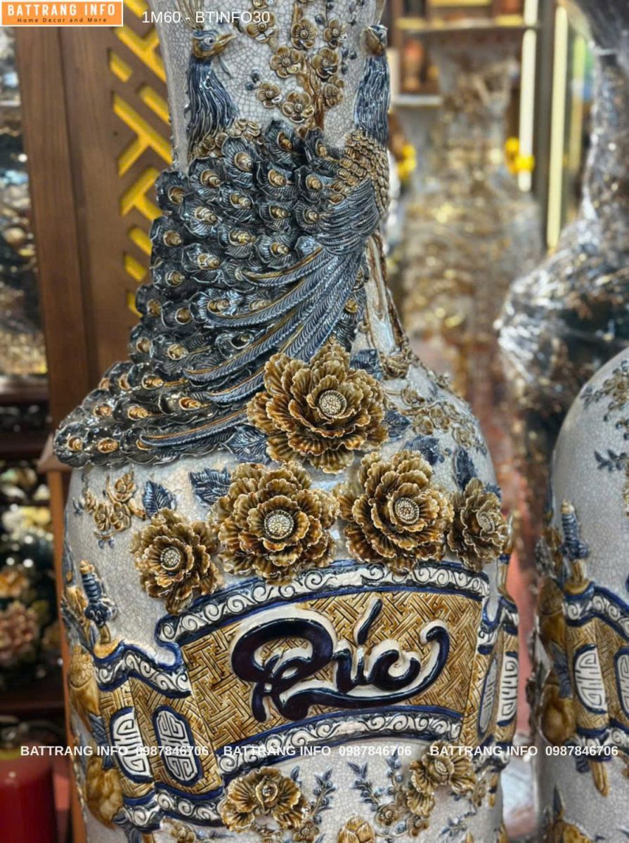 Lộc Bình Phúc Đức Men Rạn Đắp Nổi Cao 1m6 Cao Cấp Bát Tràng – Tinh Hoa Gốm Việt Cho Không Gian Phong Thủy