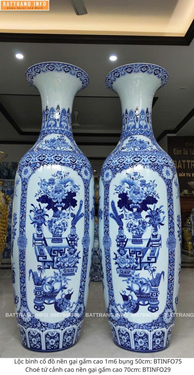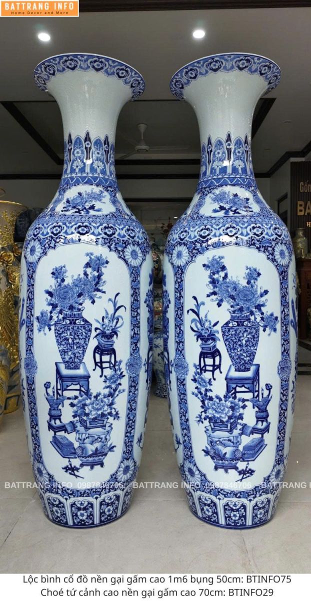 Lộc Bình Tứ Cảnh Cổ Đồ Nền Gại Gấm Cao 1m6 - Tinh Hoa Gốm Sứ Bát Tràng – Tụ Lộc Sinh Tài, Vượng Khí Gia Chủ