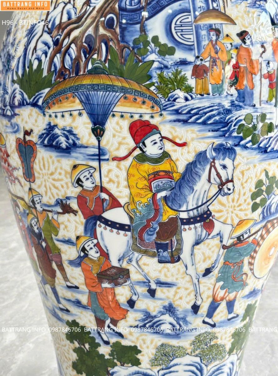 Mai bình tích lộc gấm Vinh Quy Bái Tổ cao 96cm là dòng sản phẩm gốm sứ cao cấp mang đậm giá trị nghệ thuật và ý nghĩa phong thủy sâu sắc. Đây không chỉ là vật phẩm trang trí sang trọng mà còn là biểu tượng của thành công, danh vọng và sự thịnh vượng trong cuộc sống.