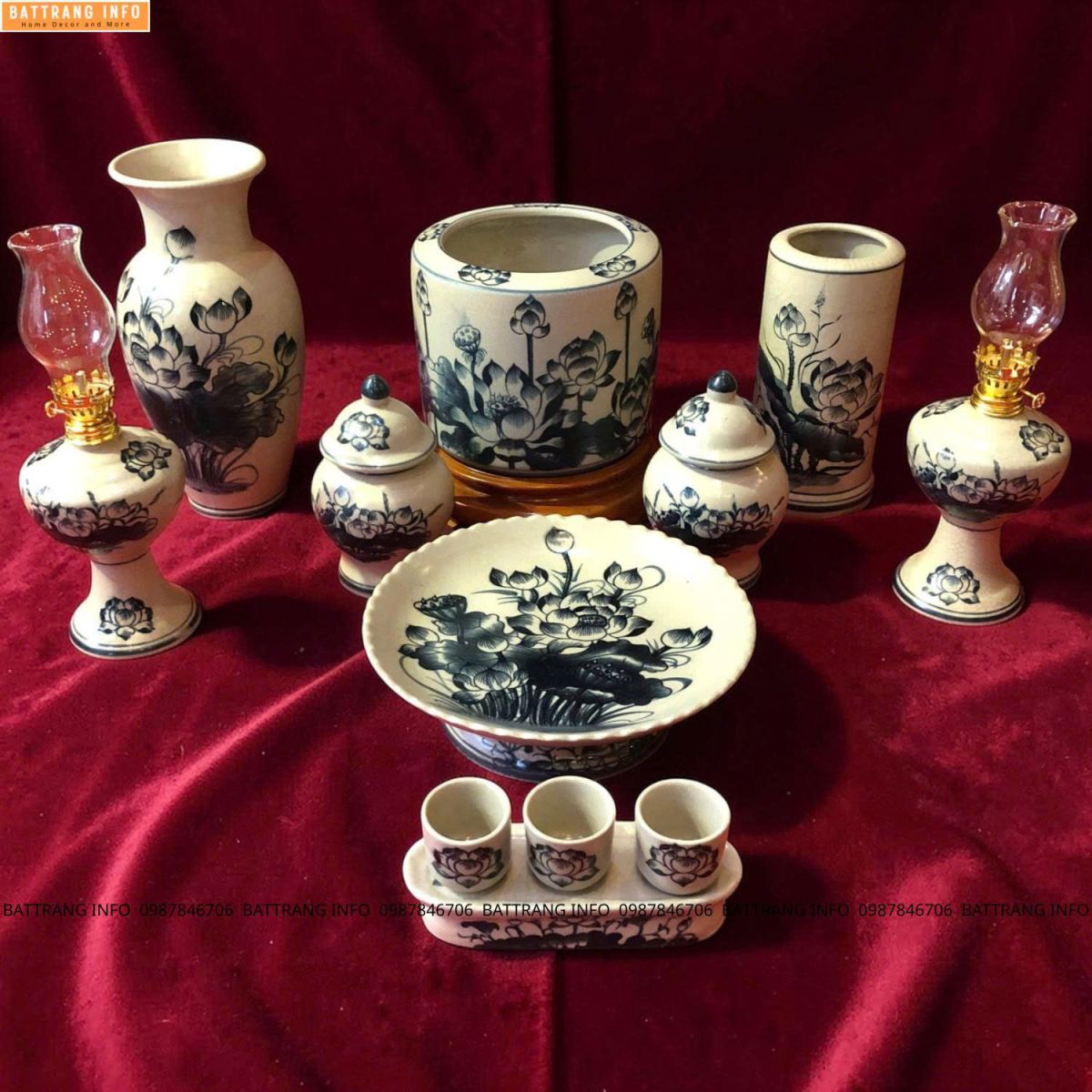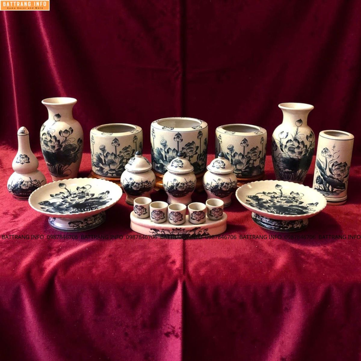 Bộ Đồ Thờ Men Rạn Vẽ Tay Họa Tiết Hoa Sen Cao Cấp Bát Tràng – Tinh Hoa Gốm Sứ Tâm Linh