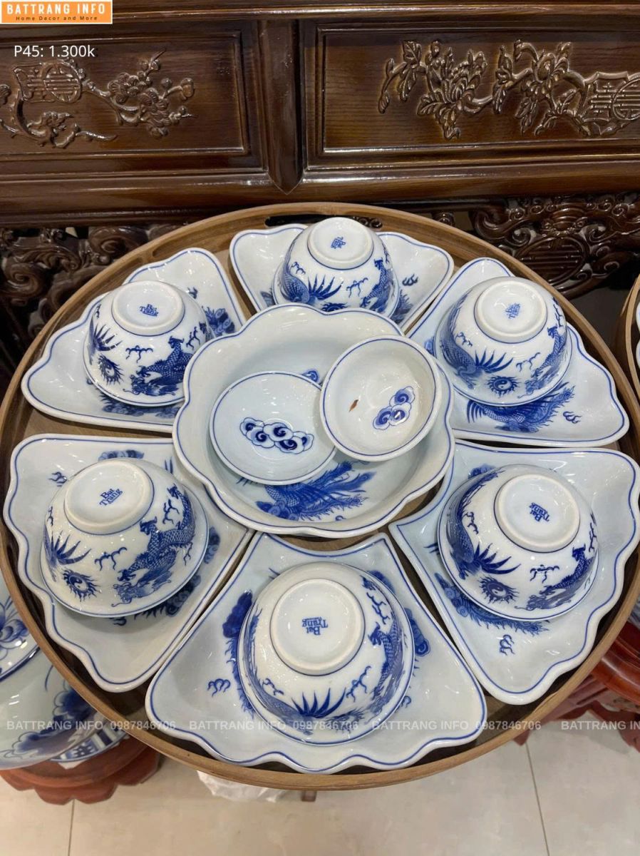Sét bát đĩa cúng hoa mặt trời P45 men lam rồng vẽ tay cao cấp Bát Tràng không chỉ là bộ đồ thờ, mà còn là sự kết tinh của tinh hoa gốm Việt, mang đến sự trang nghiêm, linh thiêng và bền vững theo thời gian cho mỗi gia đình.