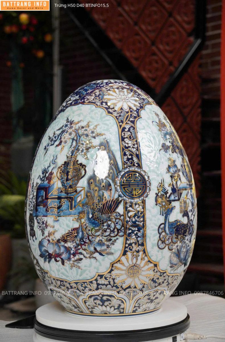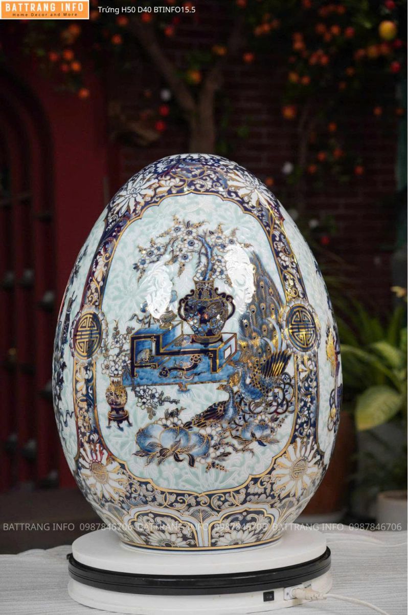 👉 Trứng phong thuỷ Tứ Quý cổ đồ men lam nền gấm vẽ vàng 24K cao 50cm là lựa chọn hoàn hảo cho không gian sống sang trọng và phong thuỷ thịnh vượng.