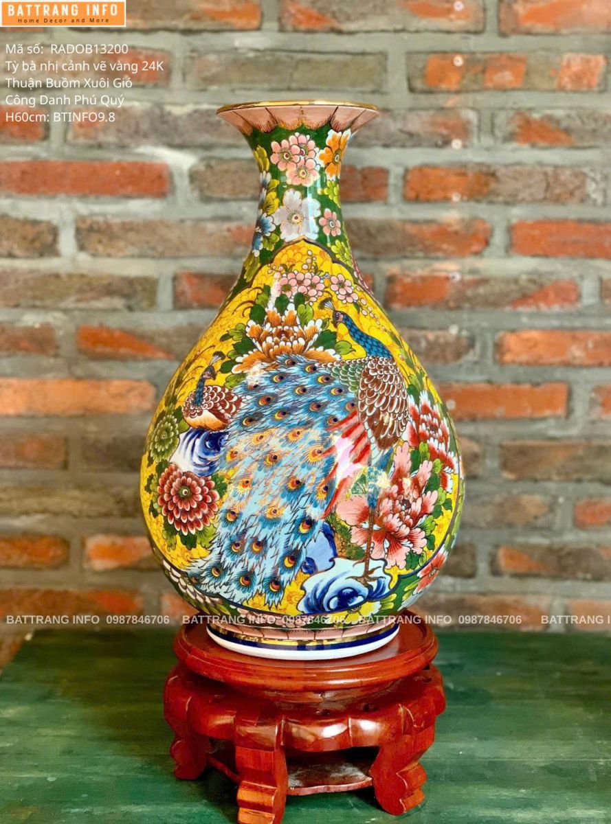 Tỳ Bà Nhị Cảnh vẽ vàng 24k là một trong những dòng sản phẩm cao cấp nhất của làng nghề gốm sứ Bát Tràng. Tác phẩm kết hợp hai cảnh phong thủy nổi tiếng: