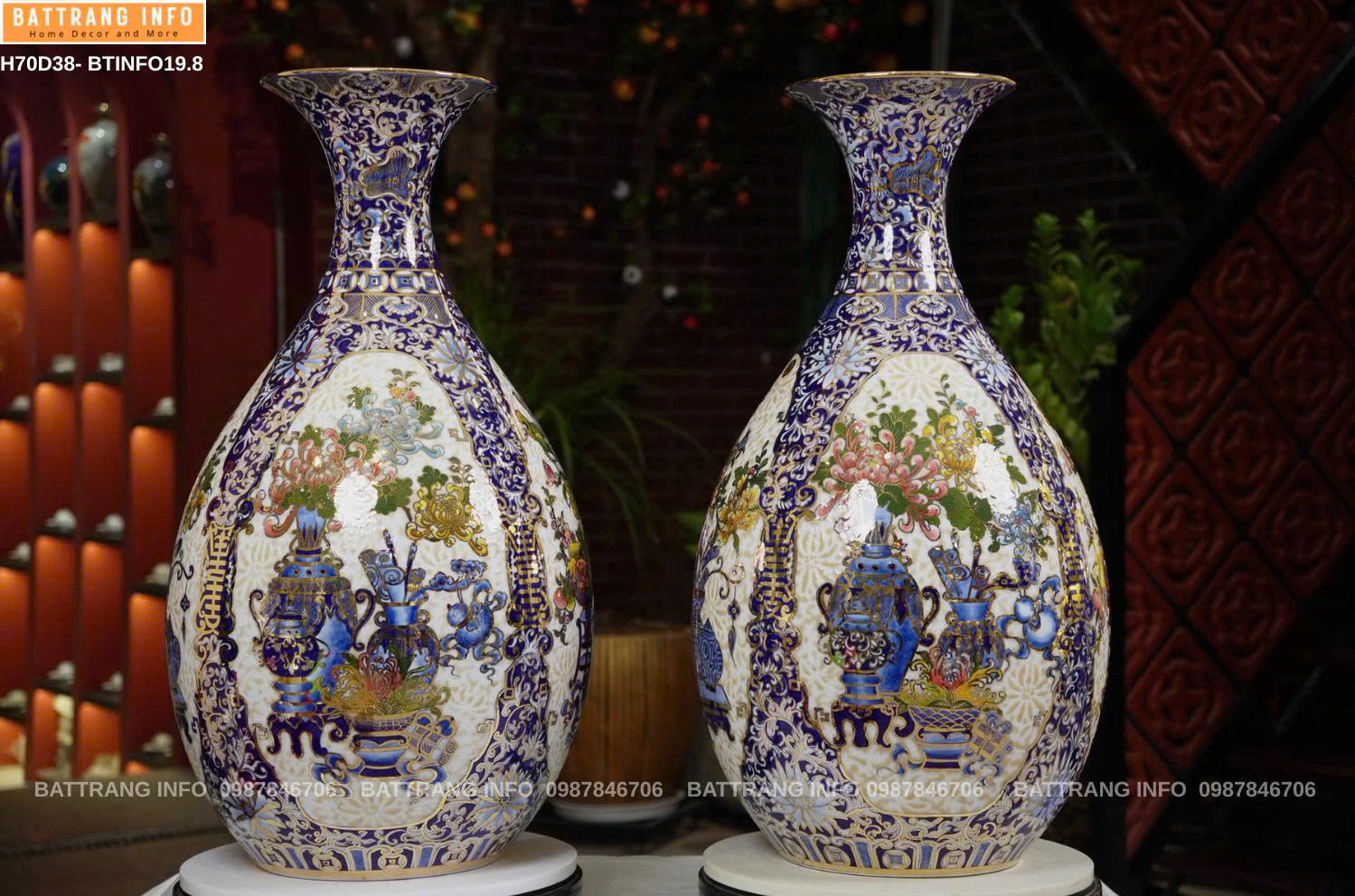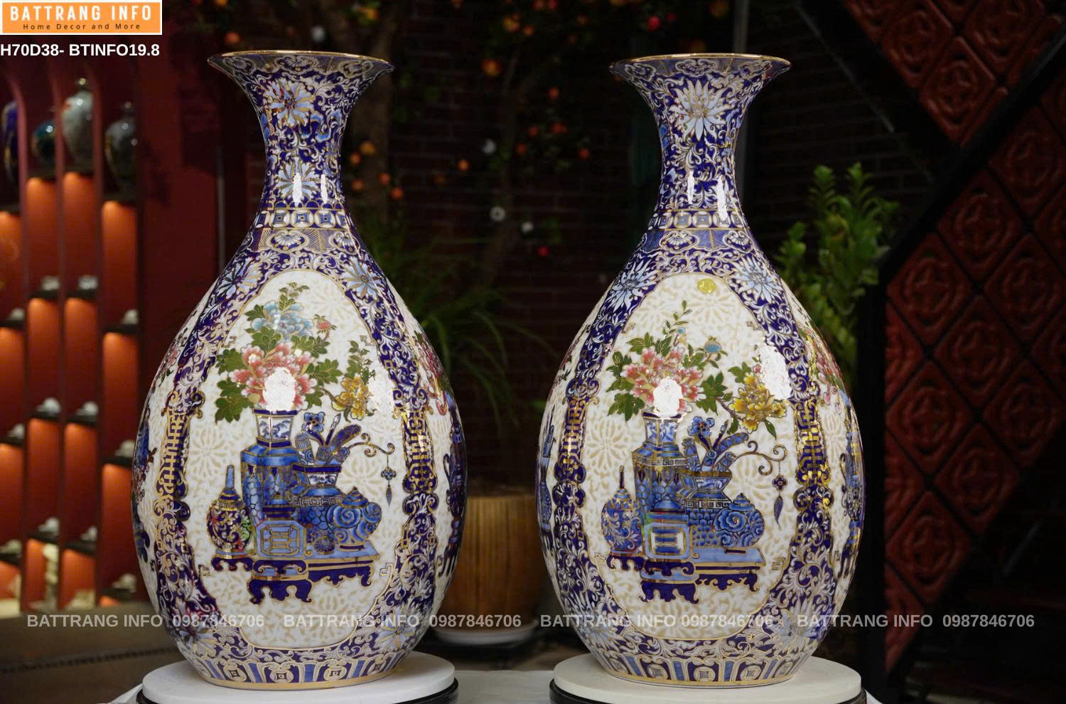 Tỳ bà tứ cảnh nền gấm vẽ vàng 24K cao cấp Bát Tràng cao 70cm là tuyệt phẩm gốm sứ hội tụ đầy đủ tinh hoa của làng nghề truyền thống Bát Tràng. Sản phẩm không chỉ mang giá trị nghệ thuật độc đáo mà còn là biểu tượng phong thủy, thể hiện đẳng cấp của gia chủ khi trưng bày trong không gian sống hoặc làm việc.