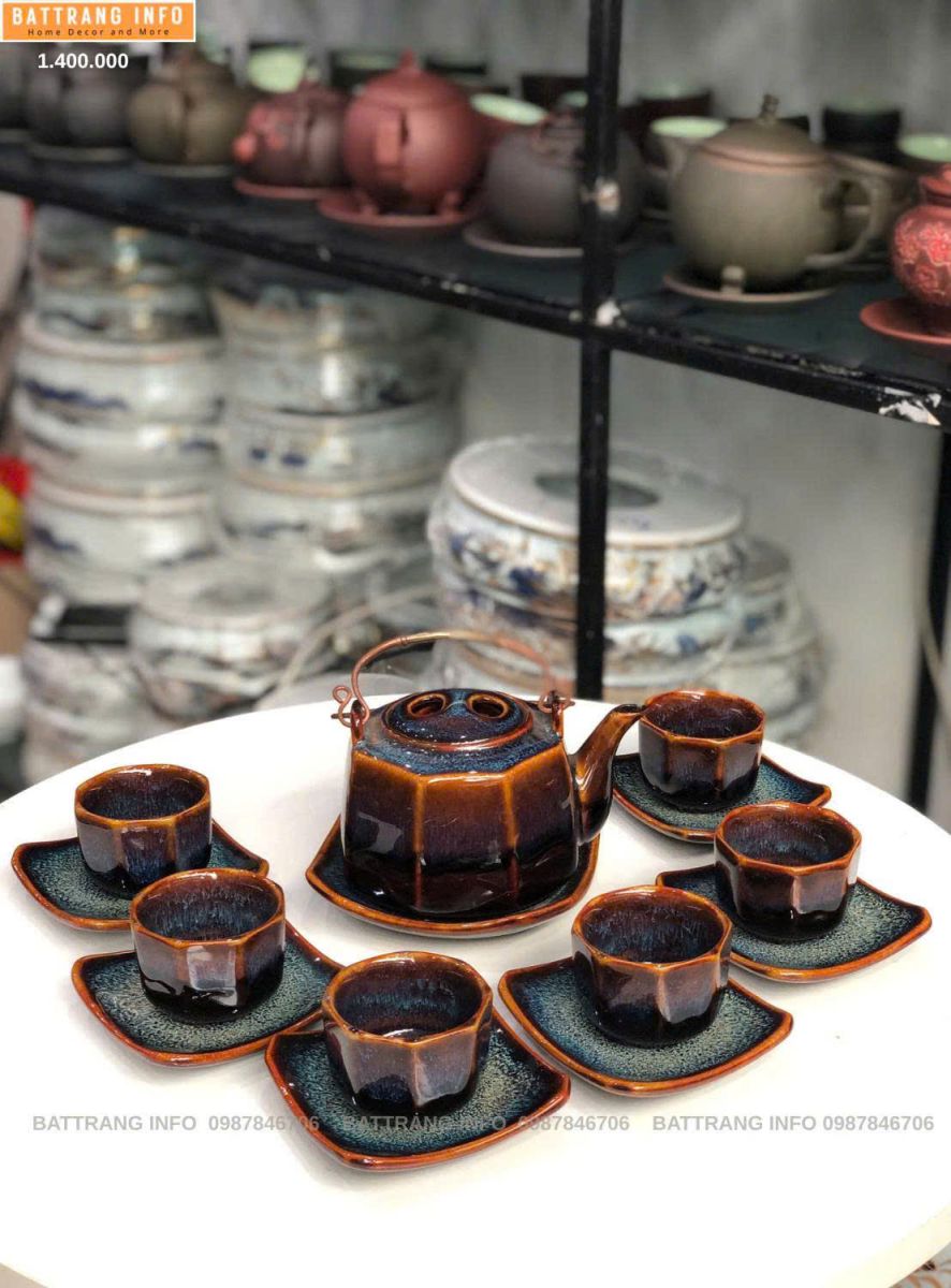 Bộ Ấm Chén Men Hỏa Biến Bát Tràng 1 Ấm 6 Chén 7 Đĩa Kê – Tinh Hoa Gốm Sứ Cao Cấp