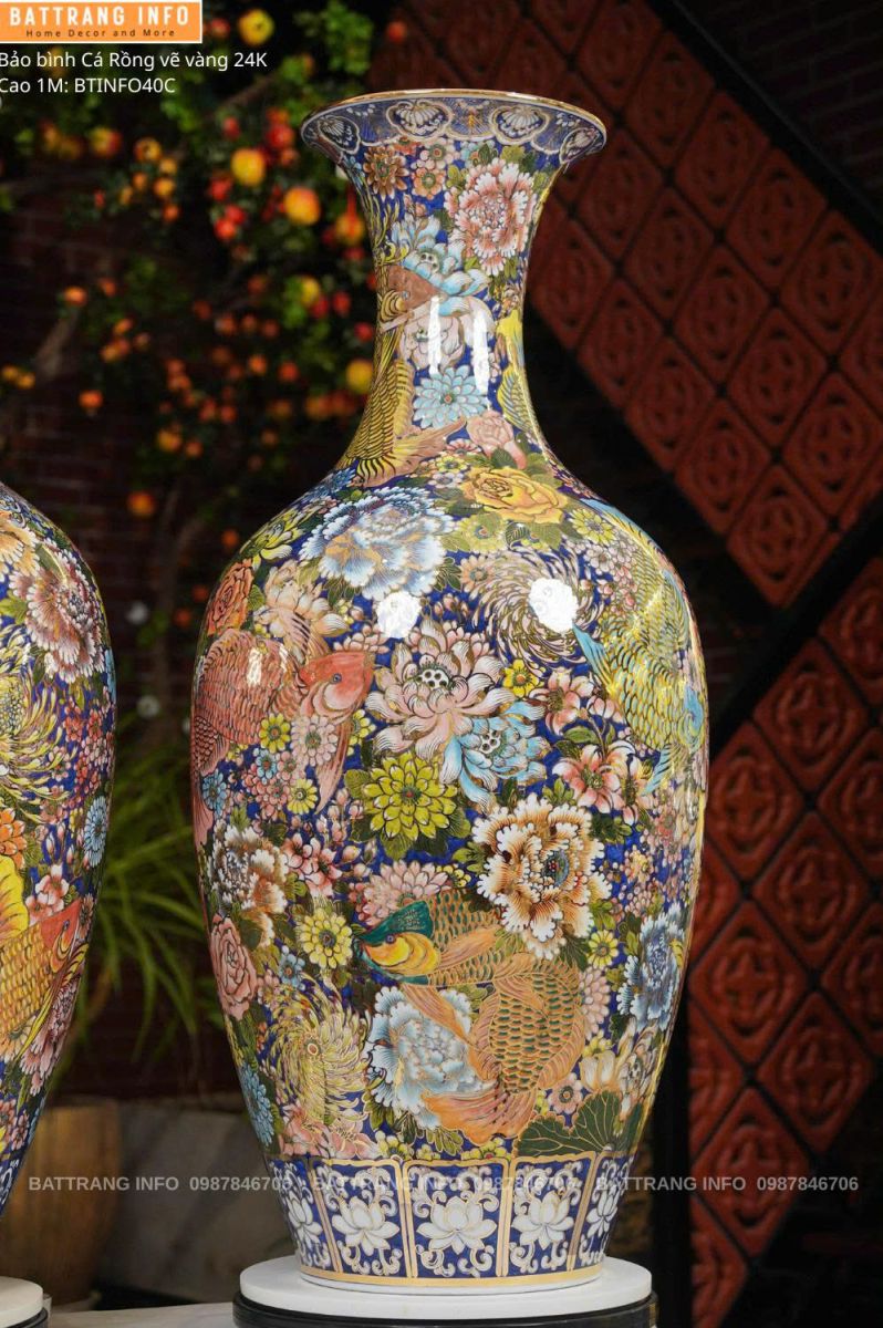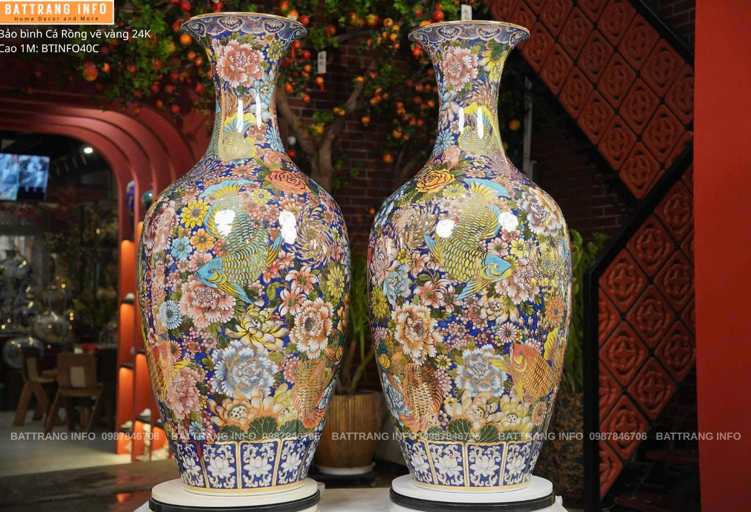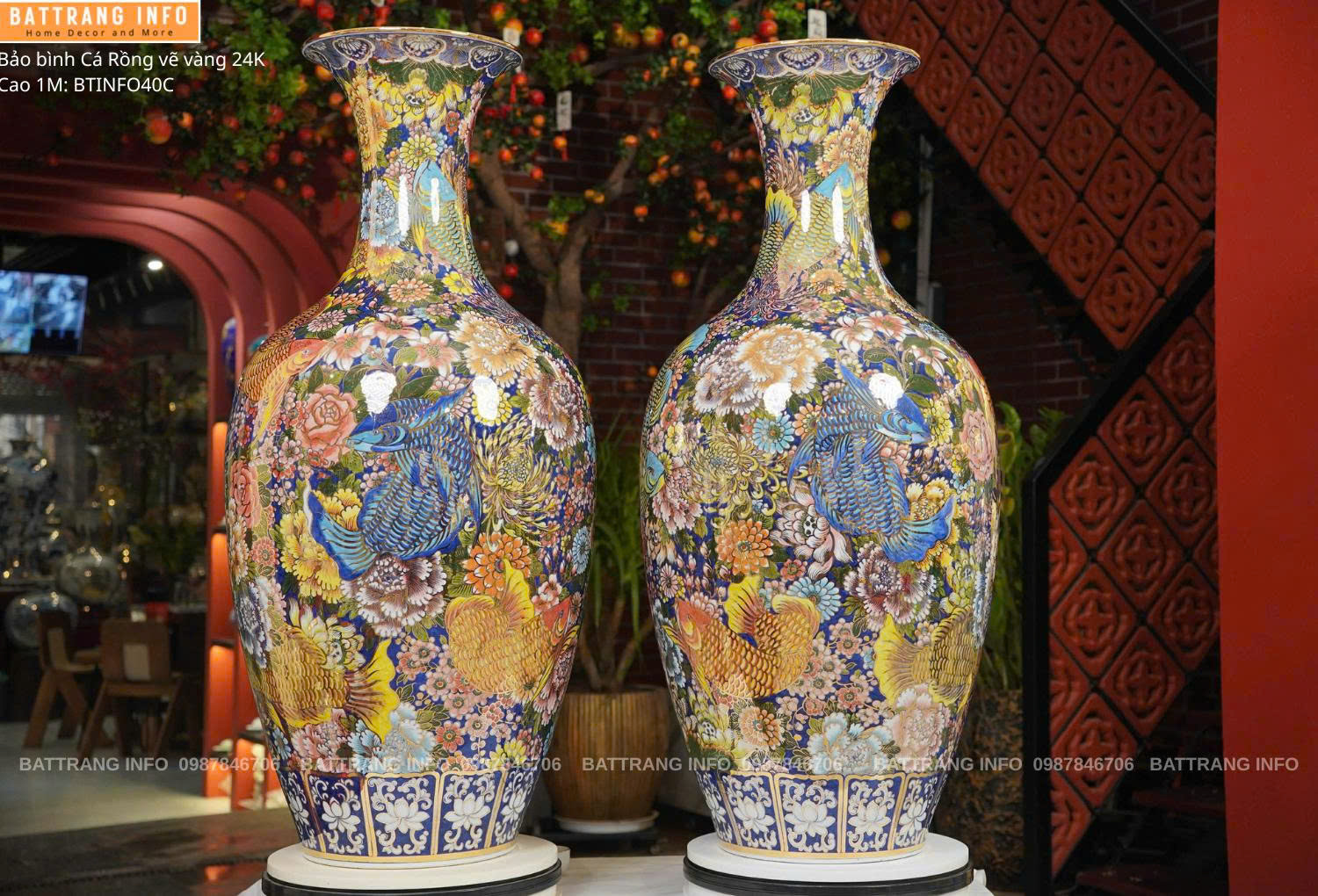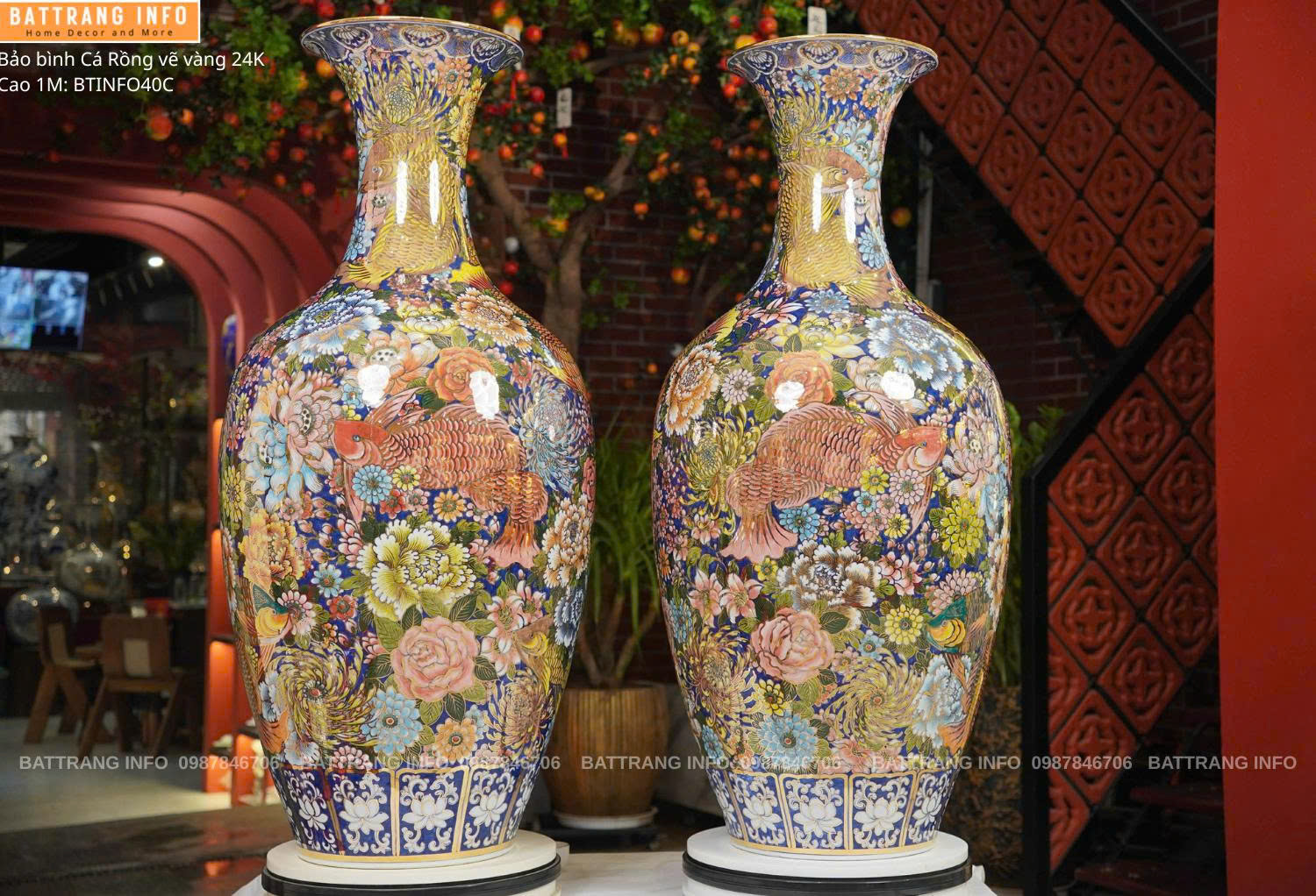 Bảo Bình Cá Rồng Cao 1m Vẽ Vàng 24K Cao Cấp – Tác Phẩm Phong Thủy Độc Tôn Từ Gốm Sứ Bát Tràng