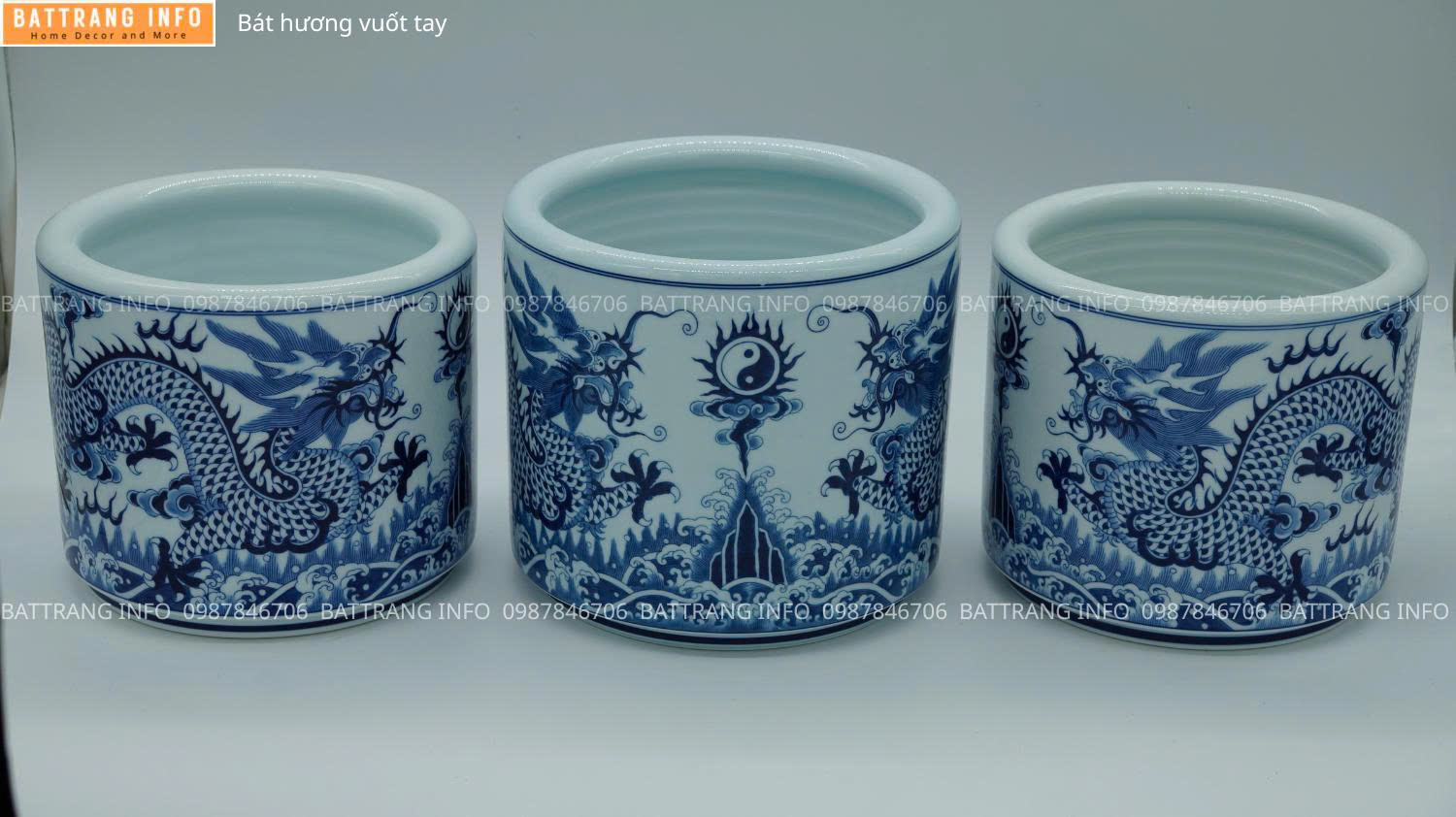 Bát hương men lam vuốt tay cao cấp có nhiều kích thước: