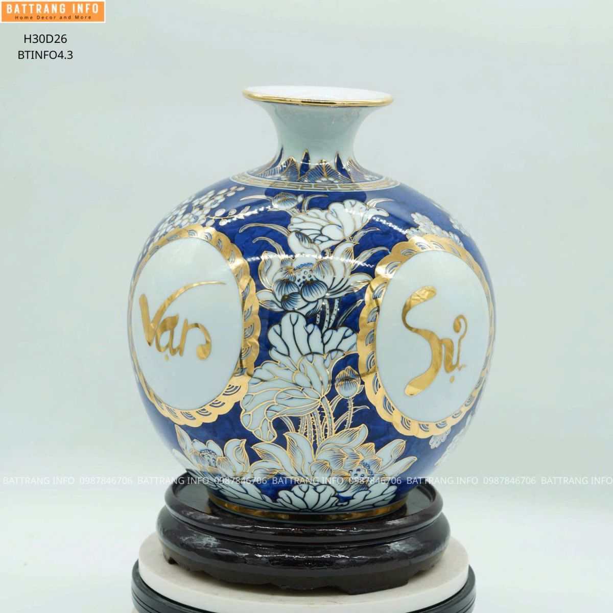 Quý khách có thể đặt mua bình hút lộc chữ Vạn Sự Như Ý cao 30cm vẽ vàng 24k chính hãng tại Gốm sứ Battrang.info