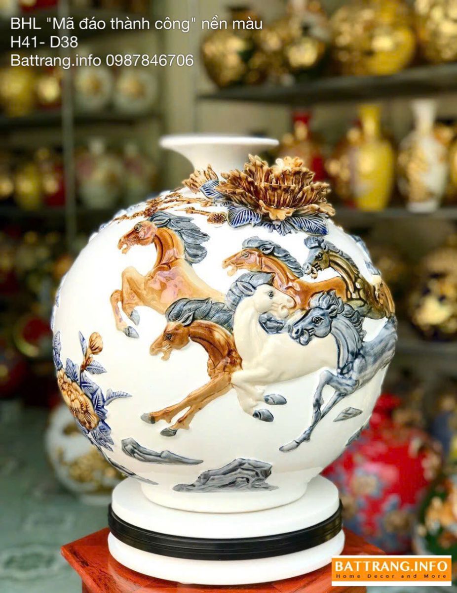 👉 Bình hút lộc Mã Đáo Thành Công nền màu cao 41cm Bát Tràng – lựa chọn hoàn hảo để chiêu tài hút lộc, khởi đầu thành công và làm quà tặng năm Bính Ngọ đầy ý nghĩa.