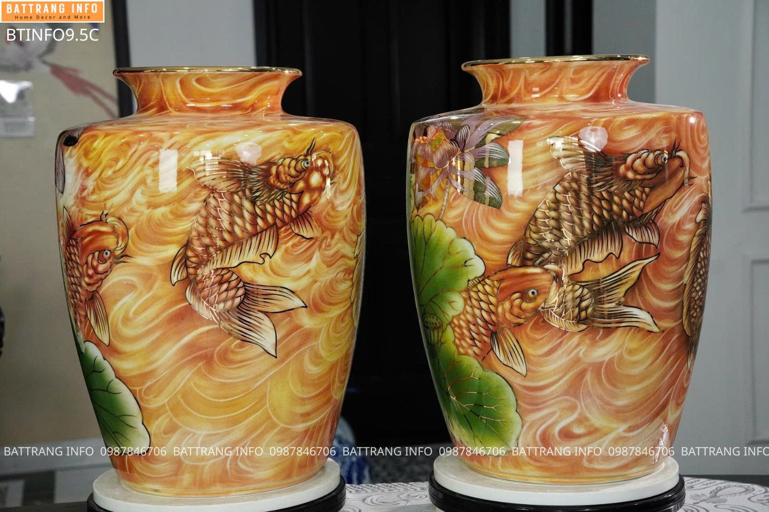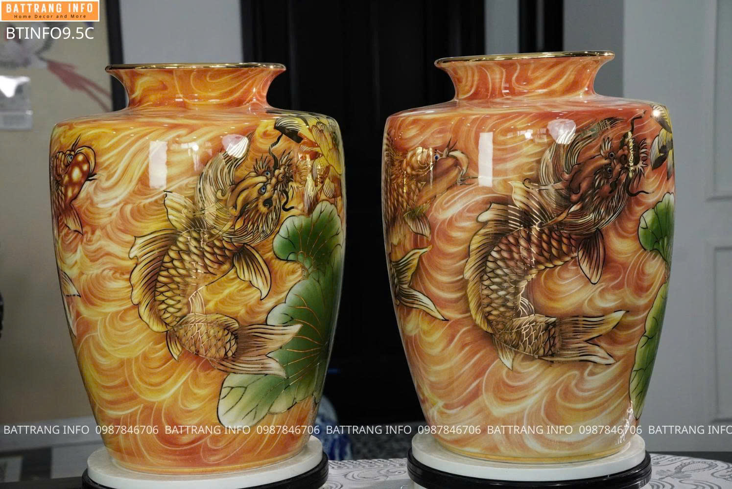 Bình tụ lộc sen cá hoá rồng vẽ vàng 24K cao cấp Bát Tràng – Biểu tượng phong thuỷ tài lộc và thịnh vượng