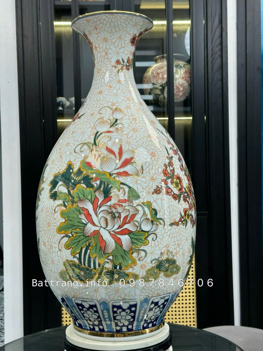 • Chất liệu: Gốm sứ Bát Tràng cao cấp, nung ở nhiệt độ trên 1300°C, đảm bảo độ bền, men sáng bóng, không phai màu theo thời gian.