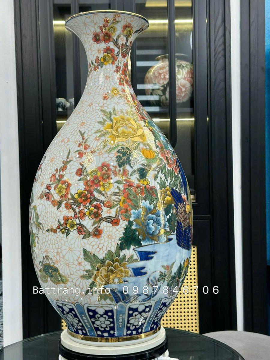 Bình Tỳ Bà Kim Kê Đại Cát cao 70cm vẽ vàng 24K – Gốm sứ Bát Tràng cao cấp