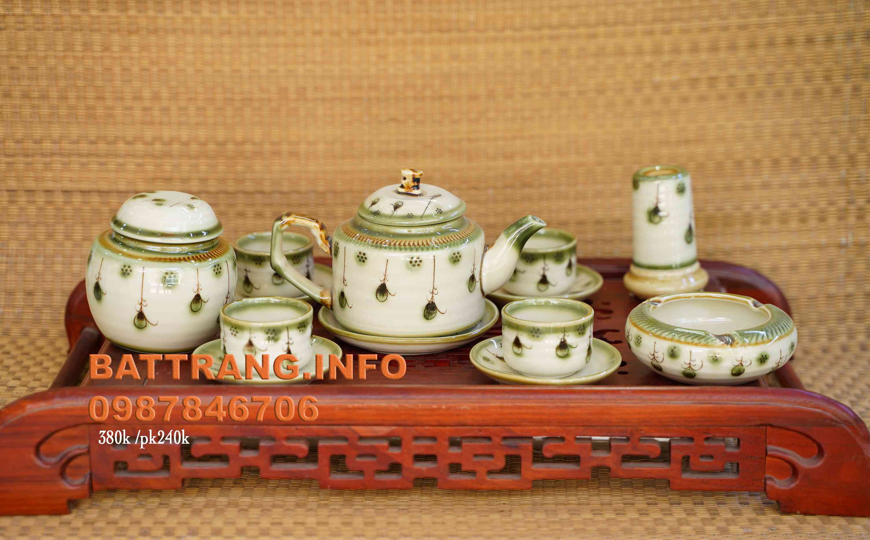 Bộ sản phẩm được làm trên chất liệu gốm sứ Bát Tràng cao cấp. Khi sử dụng bạn sẽ thấy hết ưu điểm của dòng sản phẩm cao cấp này: dễ dàng chùi rửa, không bám nước chè, họa tiết đồng điệu từ ấm, chén đến phụ kiện