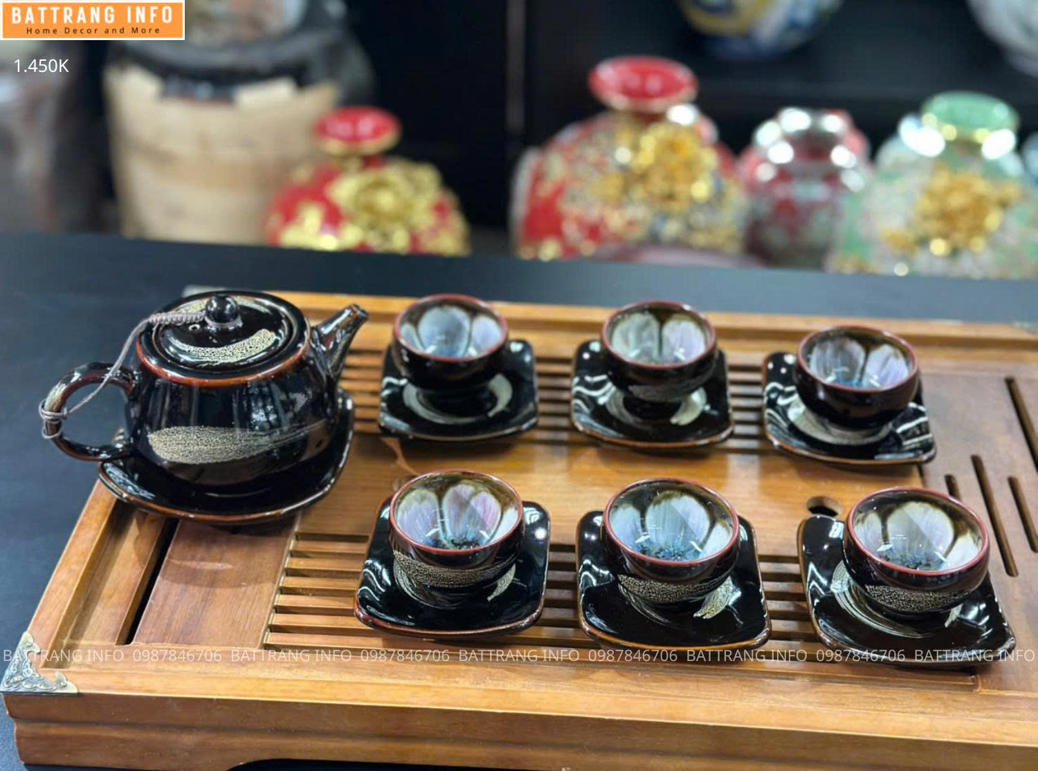 Bộ ấm chén men hoả biến cao cấp Bát Tràng là một trong những dòng sản phẩm gốm sứ nghệ thuật độc đáo và tinh xảo nhất đến từ làng gốm Bát Tràng – nơi có truyền thống hơn 700 năm làm gốm tại Việt Nam. Sự kết hợp giữa kỹ thuật nung lửa truyền thống và men hoả biến hiện đại đã tạo nên những sản phẩm ấm chén có màu sắc độc đáo, không cái nào giống cái nào, mang đậm dấu ấn cá nhân và phong cách nghệ thuật.