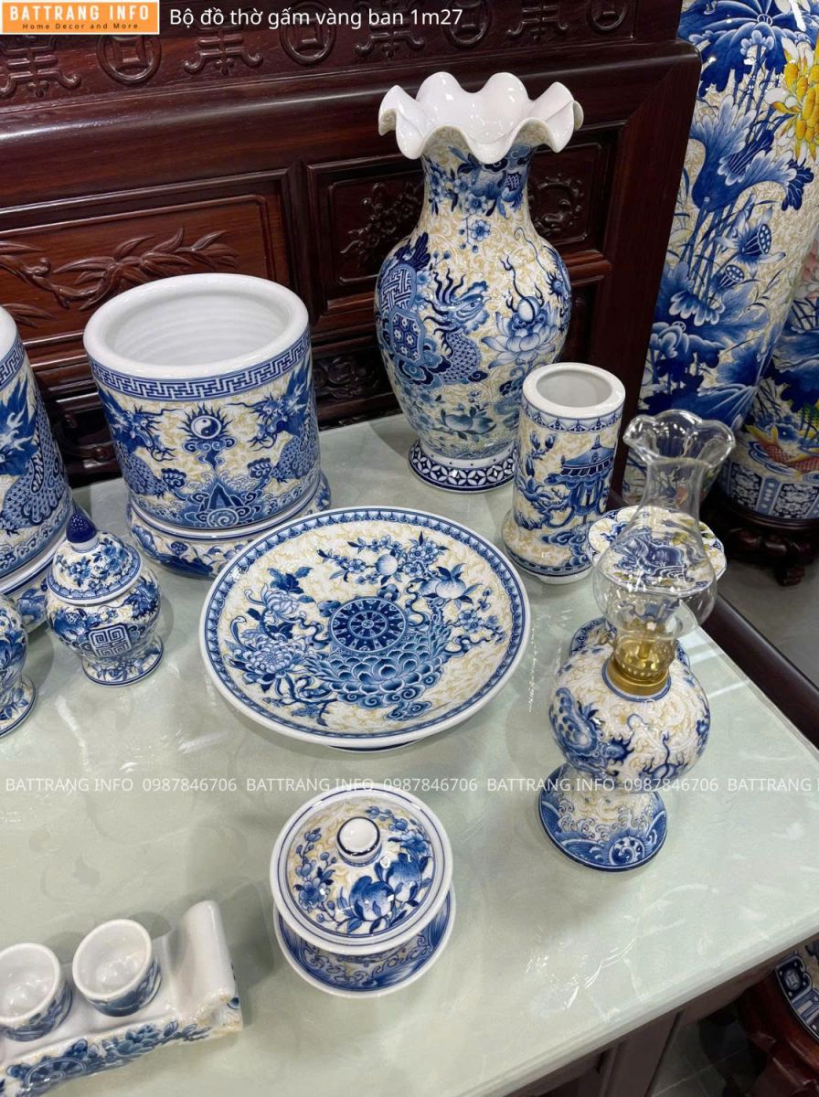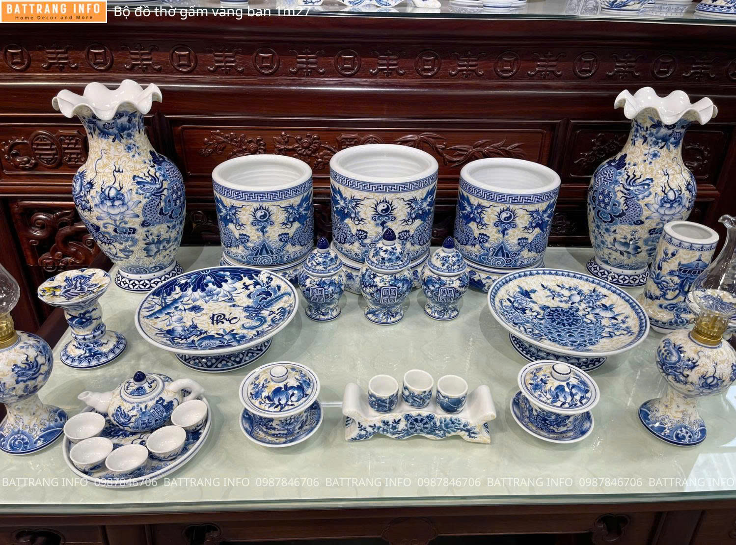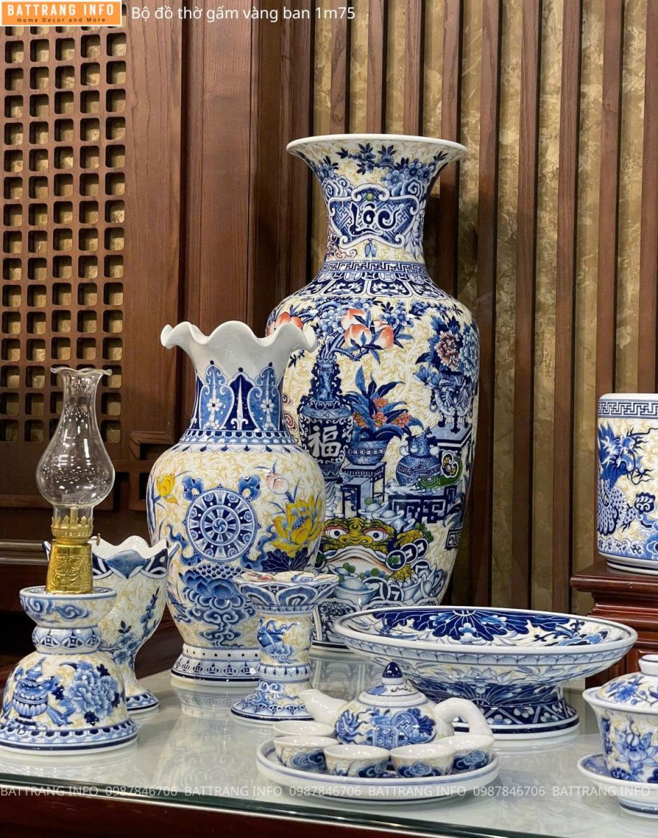 Bộ Đồ Thờ Gấm Vàng Cao Cấp Bát Tràng – Tinh Hoa Tâm Linh Việt