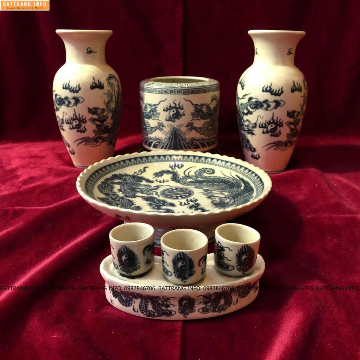 Bộ Đồ Thờ Men Rạn Vẽ Tay Họa Tiết Rồng – Gốm Sứ Bát Tràng Cao Cấp