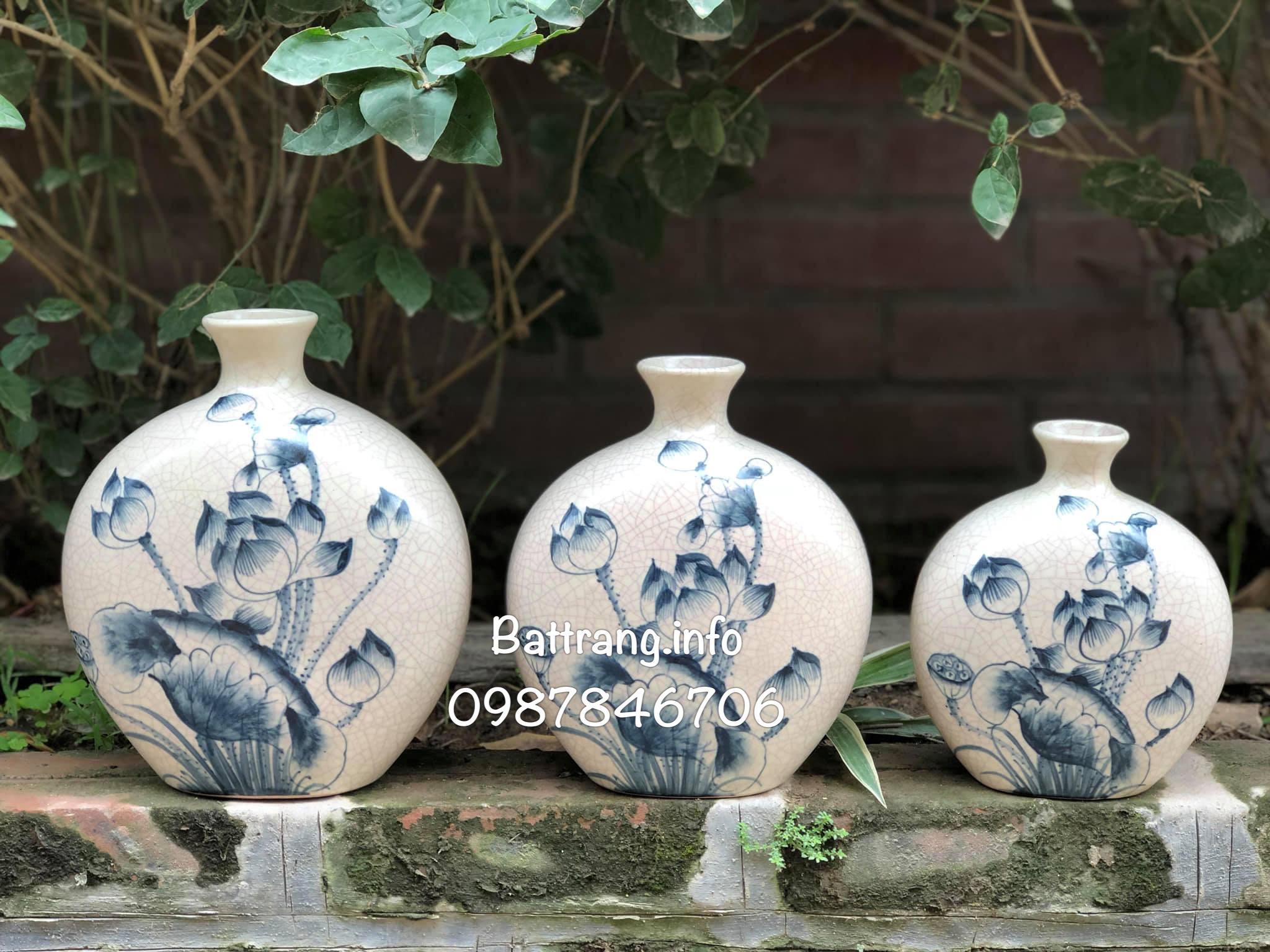 Bộ lọ hoa vò rạn cổ vẽ sen