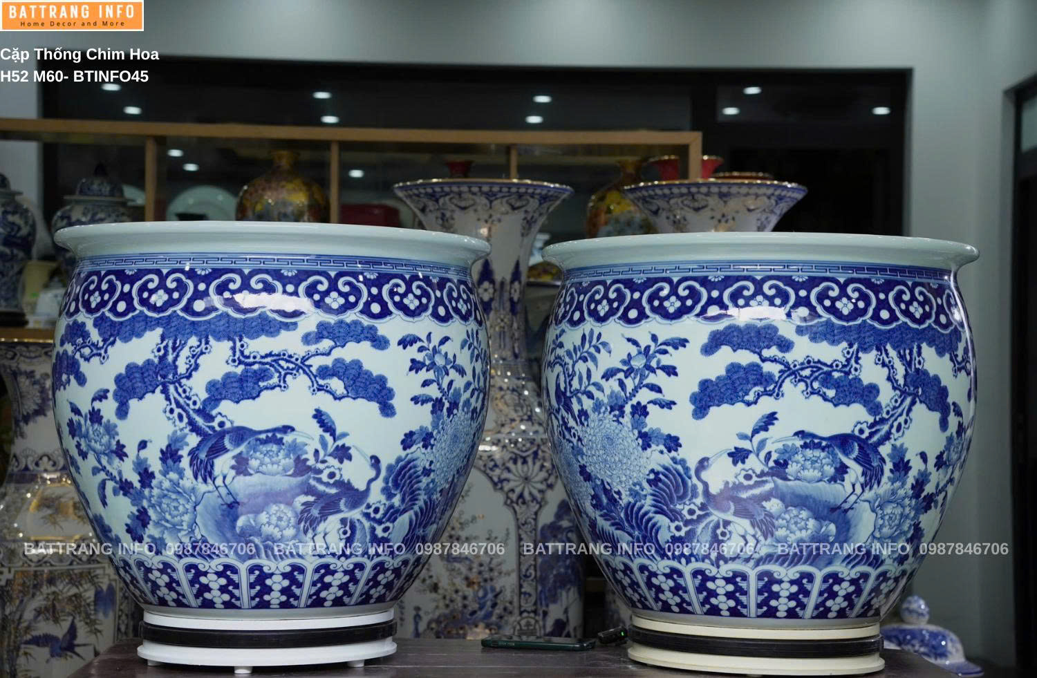 Cặp Thống Chim Hoa men lam xanh vẽ tay cao 52cm cao cấp Bát Tràng – Vẻ đẹp truyền thống đậm chất nghệ thuật