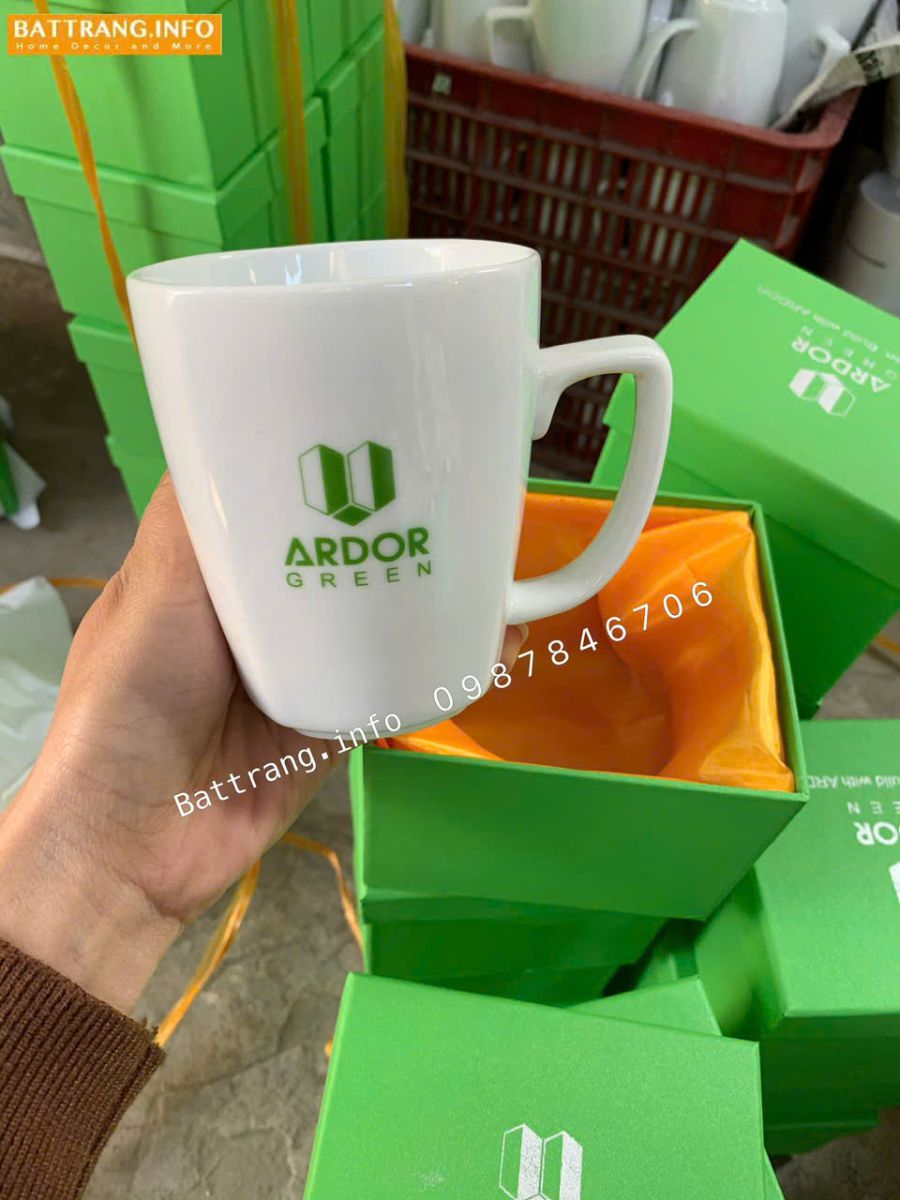 Cốc sứ là vật dụng thiết yếu trong văn phòng, gia đình. Người nhận có thể sử dụng hàng ngày, tạo ấn tượng thương hiệu lâu dài.