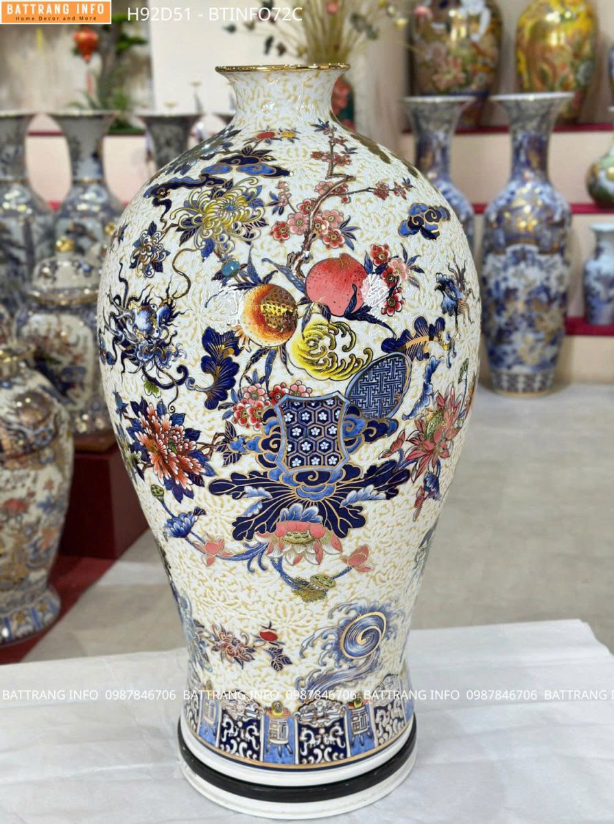 Trong không gian sống hiện đại, việc lựa chọn những vật phẩm trang trí vừa mang giá trị thẩm mỹ, vừa chứa đựng ý nghĩa phong thủy ngày càng được nhiều gia chủ quan tâm. Nổi bật trong đó là combo choé tứ cảnh và mai bình gấm men lam vẽ vàng 24K cao cấp Bát Tràng – dòng sản phẩm hội tụ tinh hoa nghệ thuật gốm sứ truyền thống và sự sang trọng đỉnh cao.